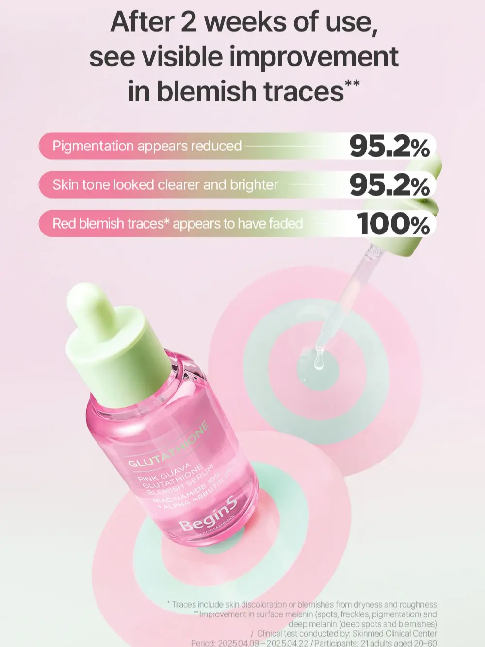 5. [BeginS by JUNGSAEMMOOL] Pink Guava Glutathione Blemish Serum - Korean Facial Serum with 10% Niacinamide, Vitamin C-rich Jeju Guava for Dark Spot Care, Radiant Glass Skin (1.01 Fl Oz)
