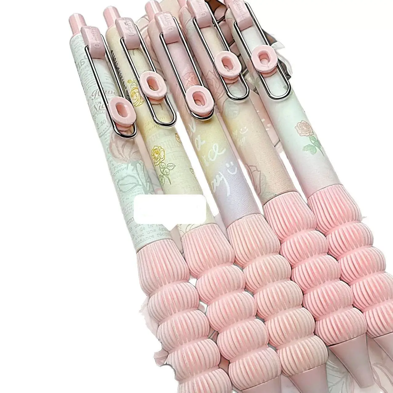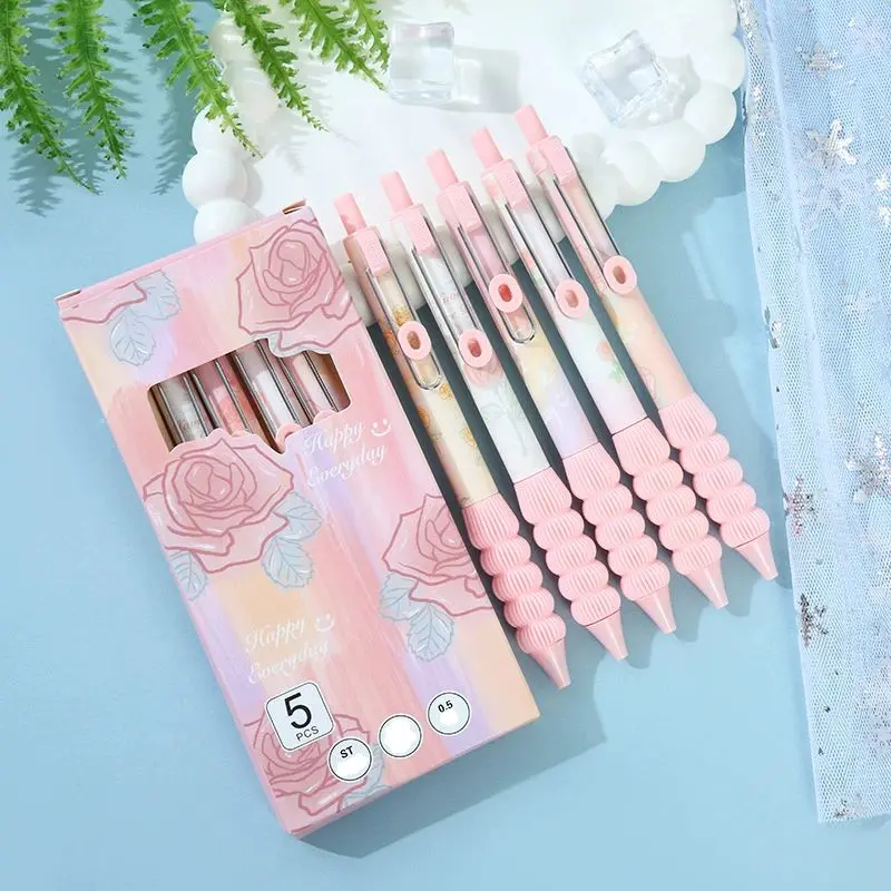 5. 1 box of 5 pink heart click gel pen romantic red rose high value study office signature pen Valentine's Day gift College Student Pen