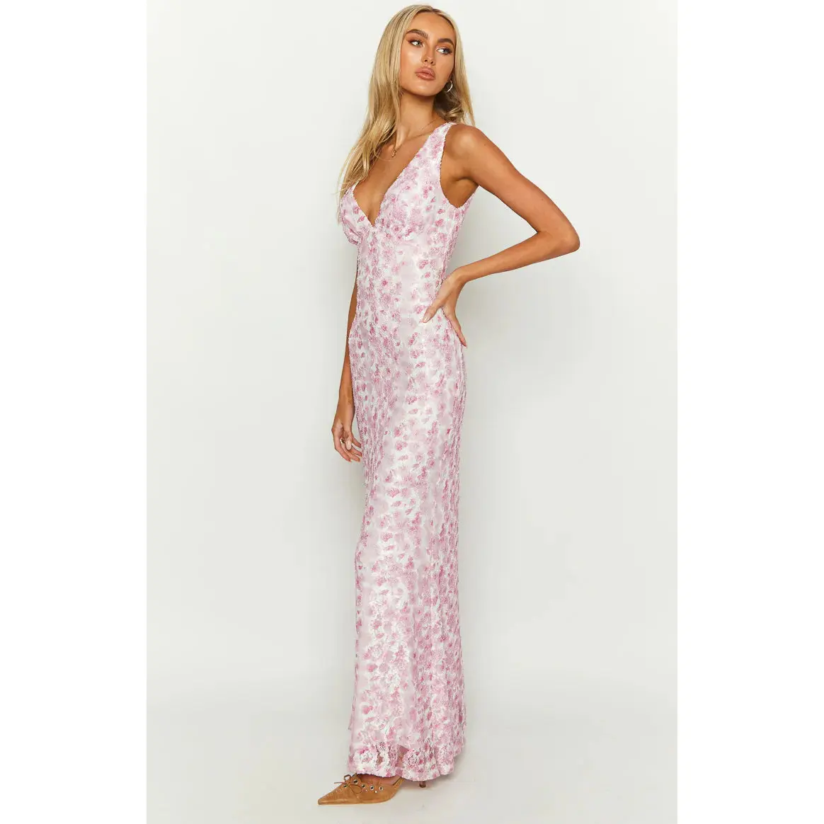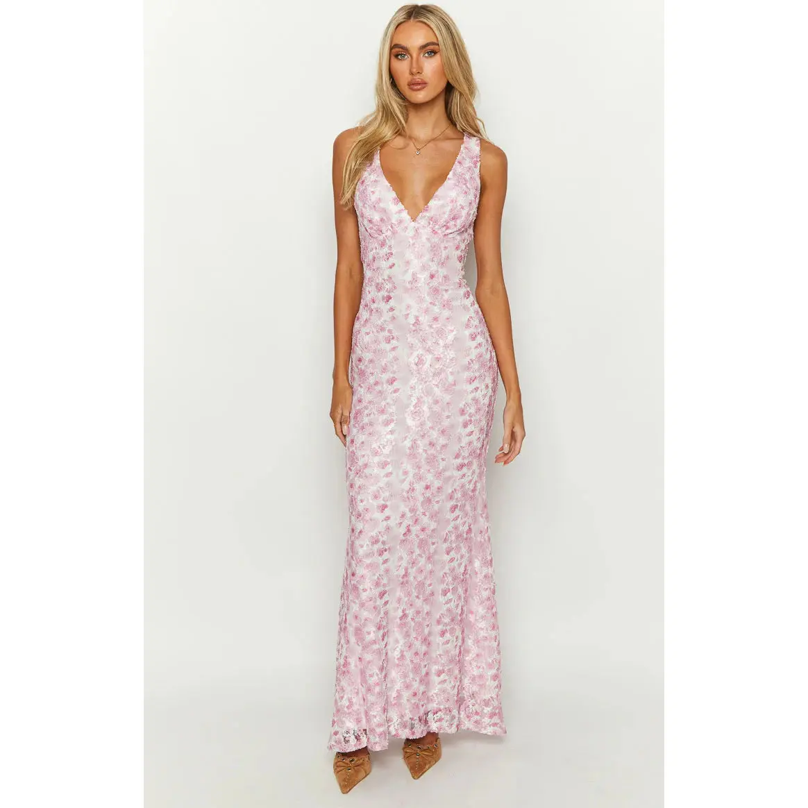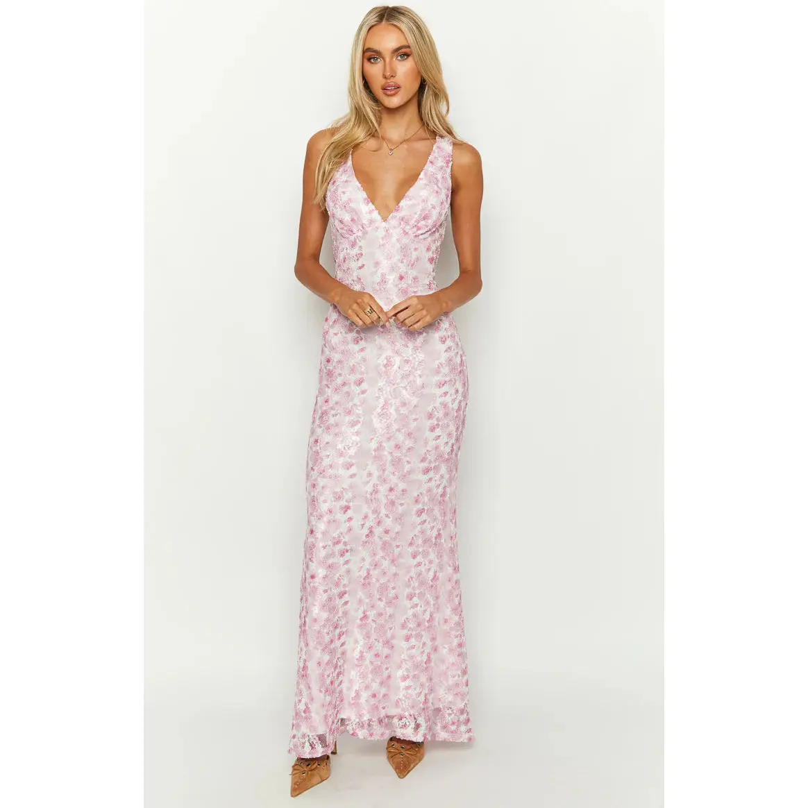 #beginningboutique @Beginning Boutique #Farida Pink Lace Maxi Dress