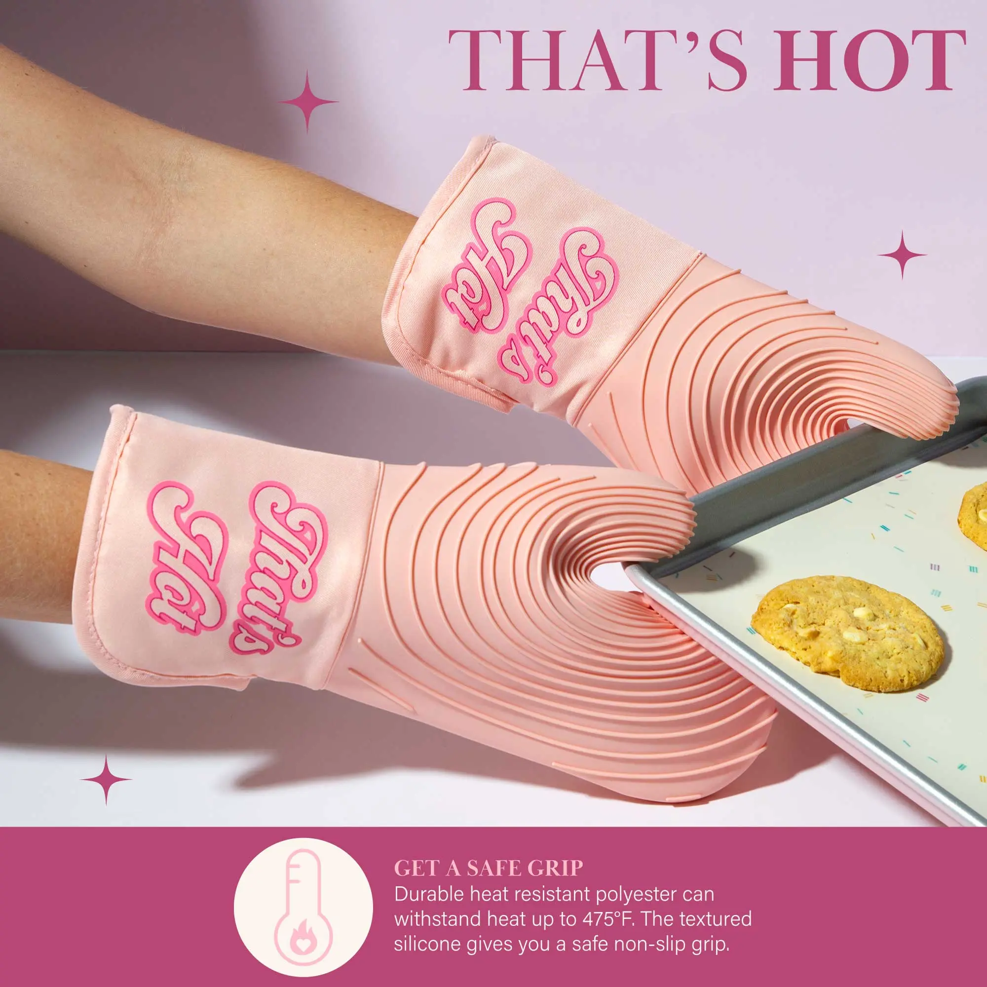 ·Color Coordination: These adorable silicone mitts are the perfect pink kitchen accessory for a new apartment, dorm room, or as a gift for the sluding chef in your life.