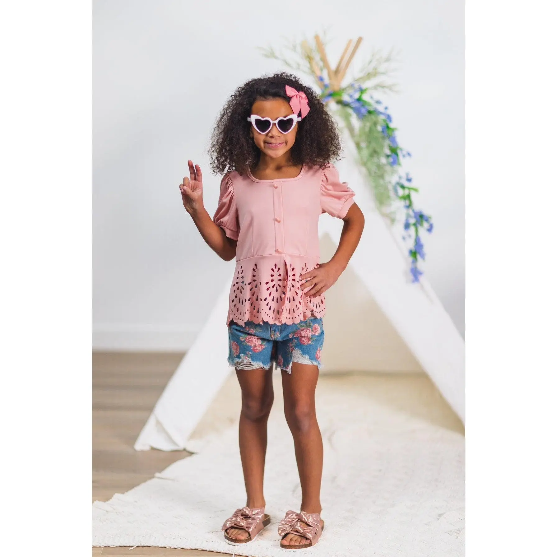 I love the rose denim short set I purchased for my daughter. Great quality, great price and quick shipping just like all of the other times. Sparkle in Pink has yet to disappoint. .