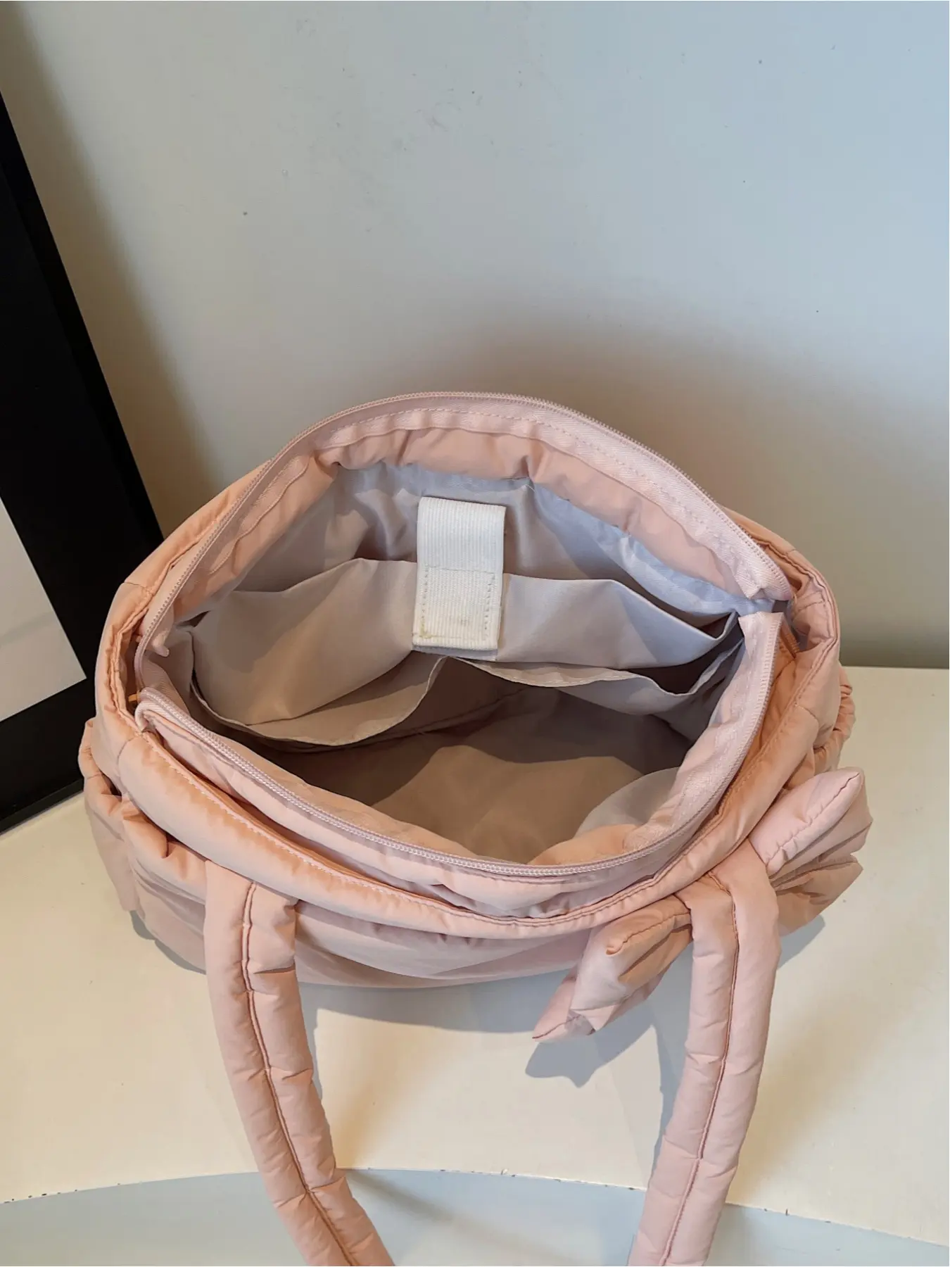 this is such a cute bag i take it everywhere with me you can actually fit a lot of things in here like a barbell pad my ipad fits in here perfectly too its a 13inch it has a pretty spacious side pocket i usually put my water in there or things i need quick access too definitely get this bag😜😜😜