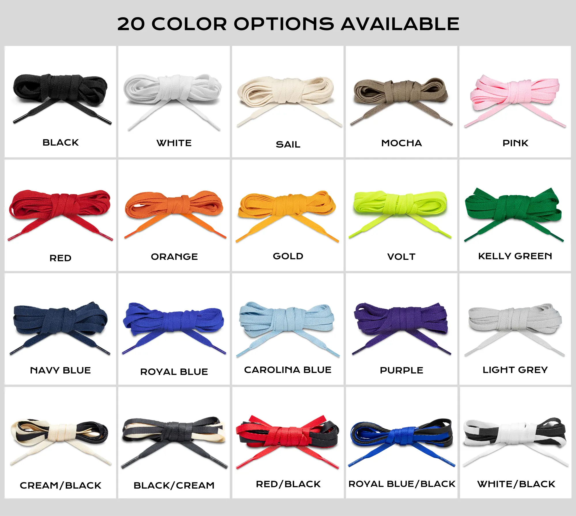 Looking to buy replacement laces for your Air Jordan 1 High's, Air Force 1's, Vans, or other sneakers? Our Pink AJ1 replacement shoelaces are the perfect fit! Same length, width, & ultra soft feel as the original's.  Recommended Lace Lengths: AJ1 High - 72" if tying at 8th eyelet. Use 63" for untied look at 8th eyelet. AJ1 Mid / AJ 4,5,6 - 63" AJ1 Low / AJ 3 - 54" For other shoes, please refer to our Sizing Chart. Width: 11/16" // 8mm