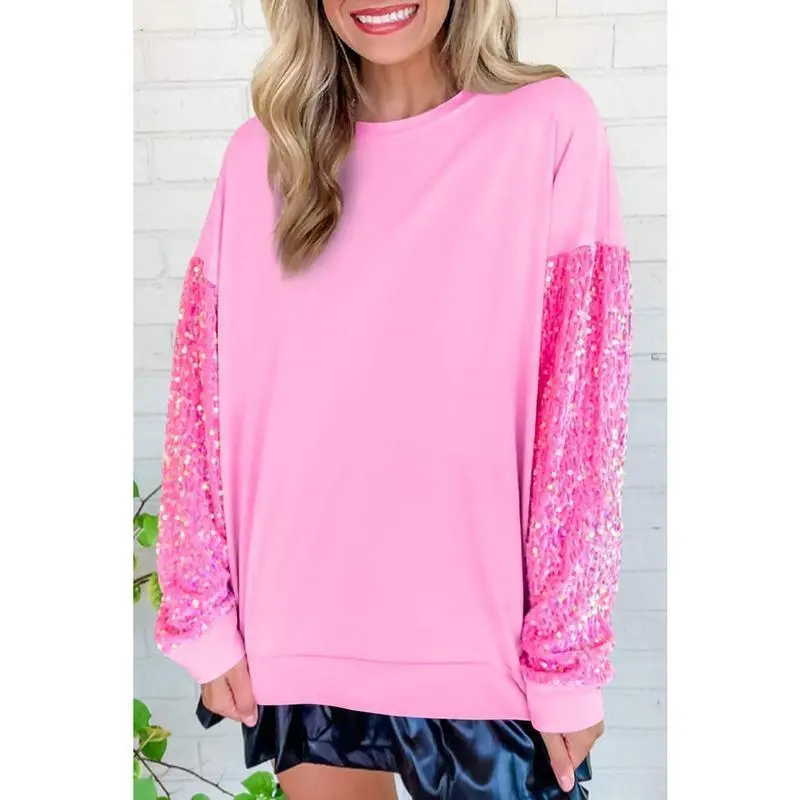 This Sequin Patchwork Long Sleeve Pullover Top is designed to turn heads with its dazzling sequin patchwork/Made from high-quality materials, this top keeps you warm and stylish during colder seasons/With long sleeves and pullover design, this top is perfect for layering or wearing on its own/It effortlessly transitions from day to night, making it a versatile addition to your wardrobe/Size Chart (CM)/Sizes/Bust/Shoulder/Sleeve_Length/Length/Hem_Width/Relax/Relax/Relax/Relax/Relax/S/104/59/52/66/94/M/110/62/52.5/68/100/L/116/65/53/70/106/XL/124/69/53/72/114/Elasticity/Medium-High/Size Chart (INCH)/Sizes/Bust/Shoulder/Sleeve_Length/Length/Hem_Width/Relax/Relax/Relax/Relax/Relax/S/40.9/23.2/20.5/26.0/37.0/M/43.3/24.4/20.7/26.8/39.4/L/45.7/25.6/20.9/27.6/41.7/XL/48.8/27.2/20.9/28.3/44.9/Elasticity/Medium-High