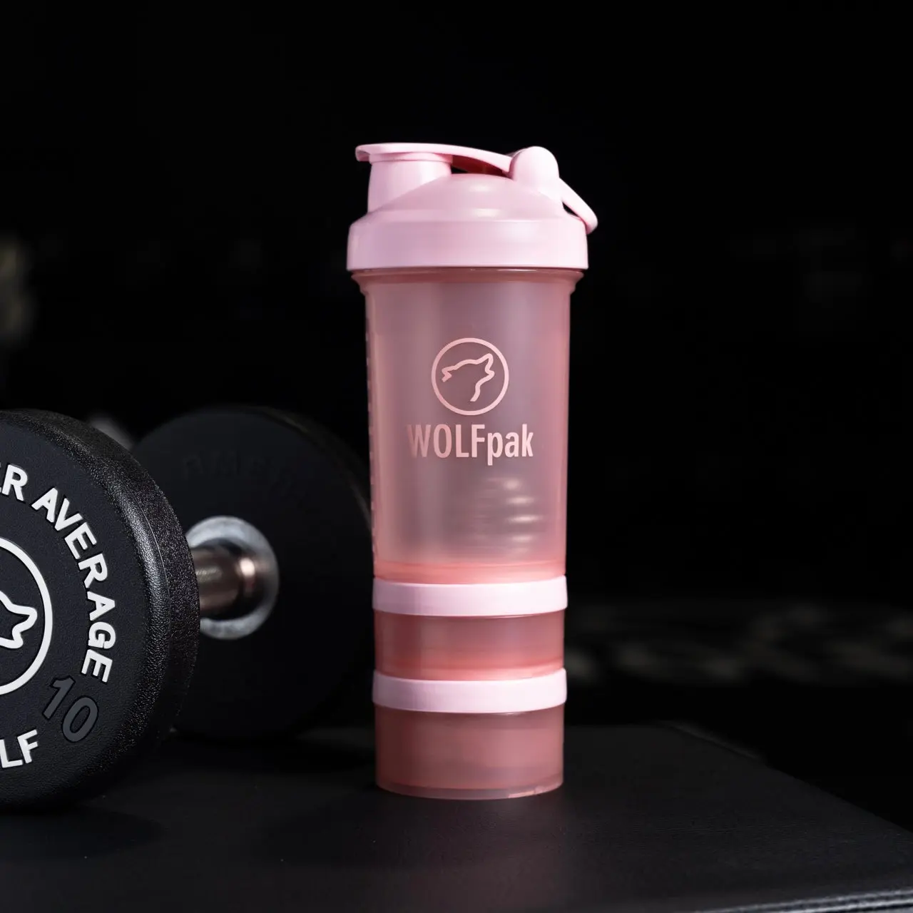 16 oz Capacity with Storage for Pills & Powder Carry your supplements, snacks, pills and more, all in the same bottle.  WOLFpak's shaker bottle is the ultimate all-in-one shaker cup, offering a variety of features to make on-the-go nutrition easier than ever.