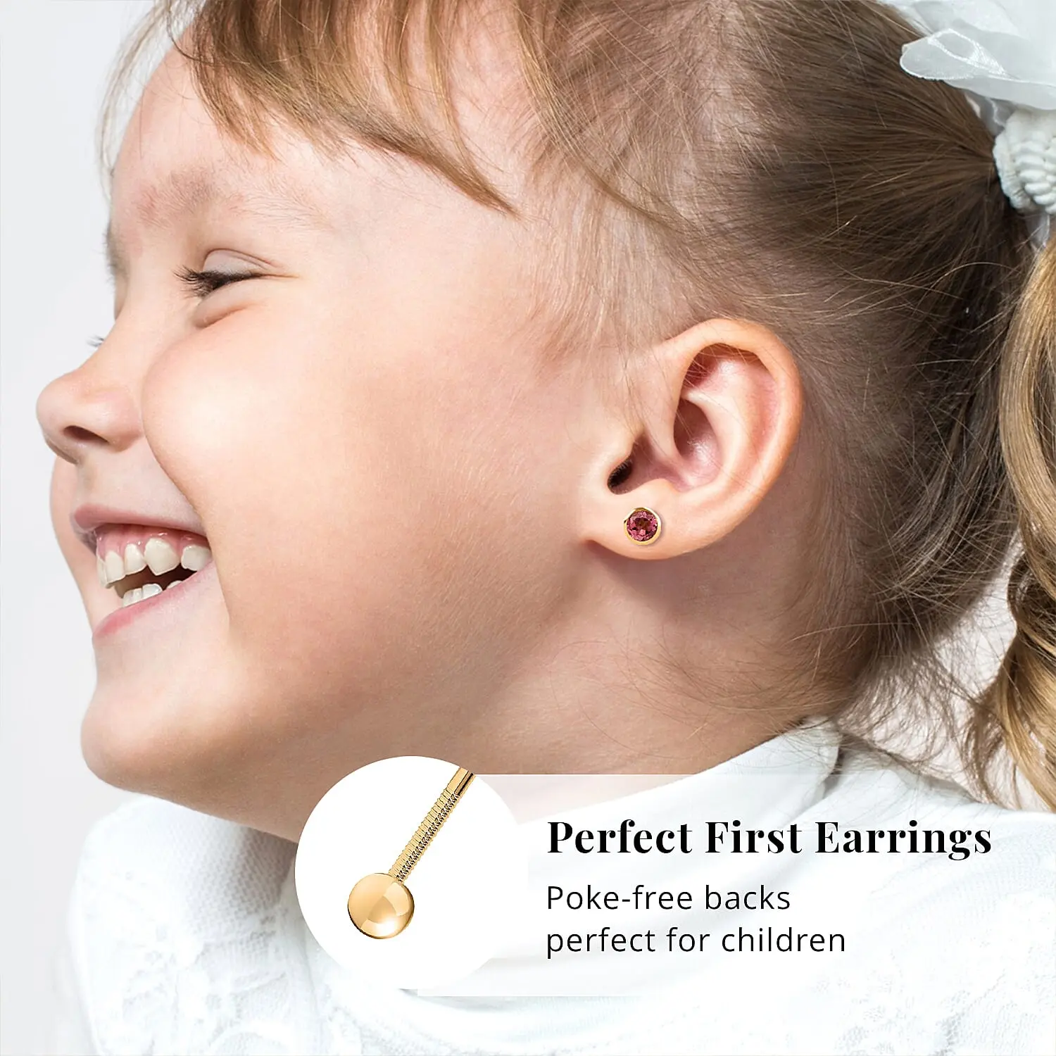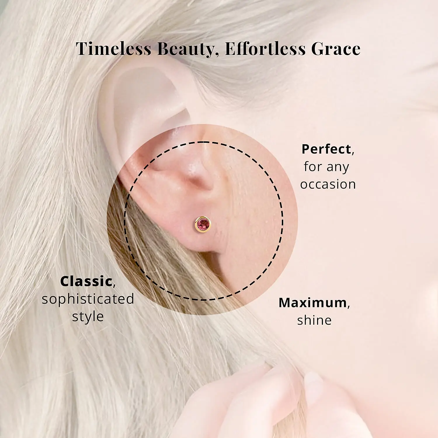 Elevate your stylish looks with these poke free gemstone stud earrings in sterling silver. These sparkling gemstone earrings are crafted in durable sterling silver. The rounded screw post back design ensures a secure, poke free wear all day. Ideal for formal and daily wear, these studs add sparkle to your everyday ensemble.Details | Round shape 4mm gemstone | Bezel setting holds the gem securely | Durable and sterling silver | Lasting sheen with rich finish | Poke free with rounded screw post backing | Versatile design, ideal for all styles