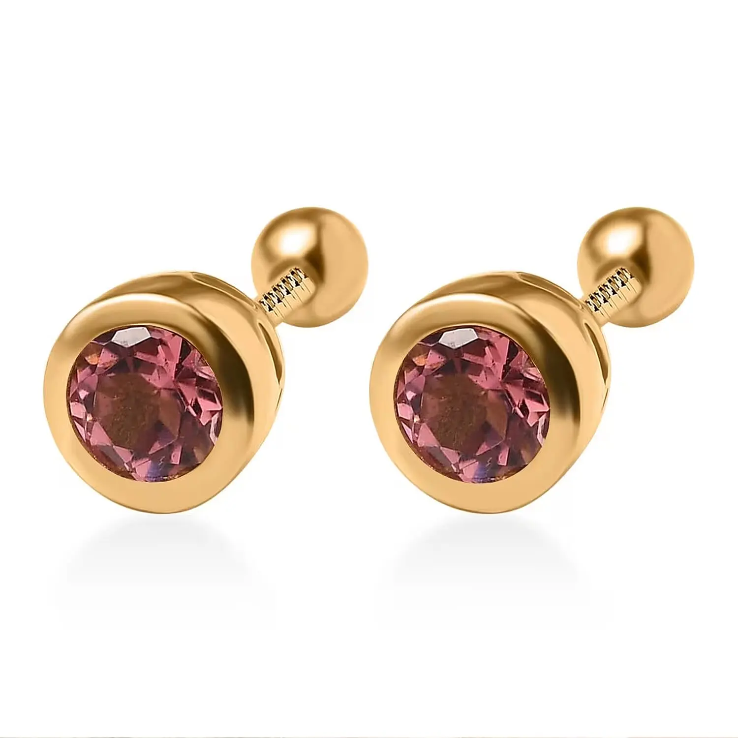 Shop LC D'Joy Poke Free  Pink Tourmaline 0.50 ctw Stud Earrings in 18K Vermeil Yellow Gold Over Sterling Silver