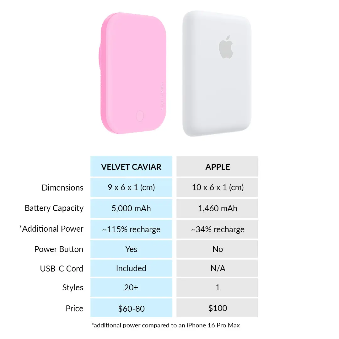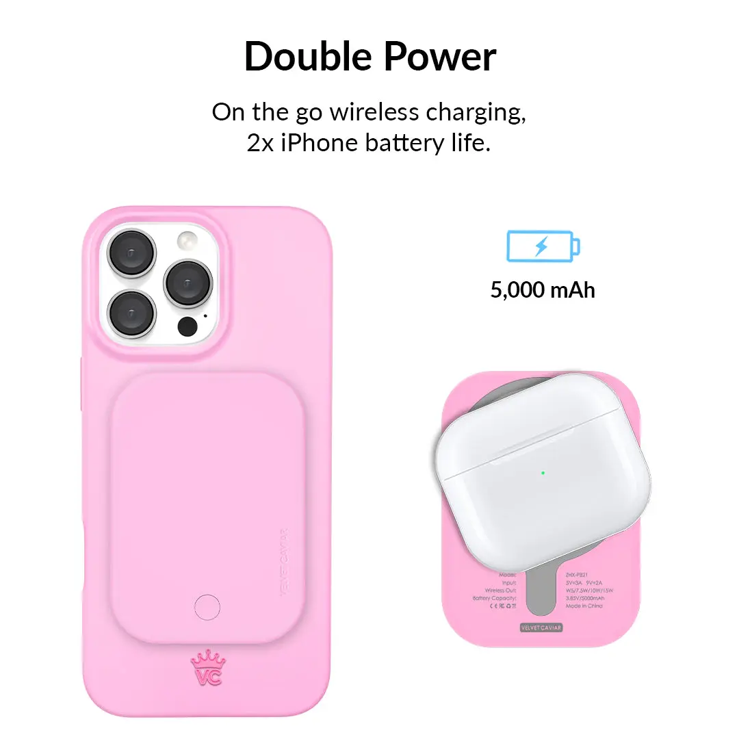 Ever find yourself scrambling for a charger when your phone hits 10%? Meet your new pocket-sized lifesaver: the Pink Sugar MagSafe Battery Power Pack. This sleek, lightweight charger doubles your phone’s battery life without the bulk. Its MagSafe compatibility means it snaps right onto the back of your iPhone, no cables needed. Whether you're running errands, traveling, or just out for the day, this power pack keeps your device powered up with fast charging capabilities. Plus, its fun pink design adds a pop of color to your everyday tech. Inside the box, you get the wireless MagSafe power pack ready to juice up your phone anytime. Say goodbye to low-battery anxiety and hello to freedom with this stylish, portable charger. Grab yours and keep your phone—and your day—fully charged!
