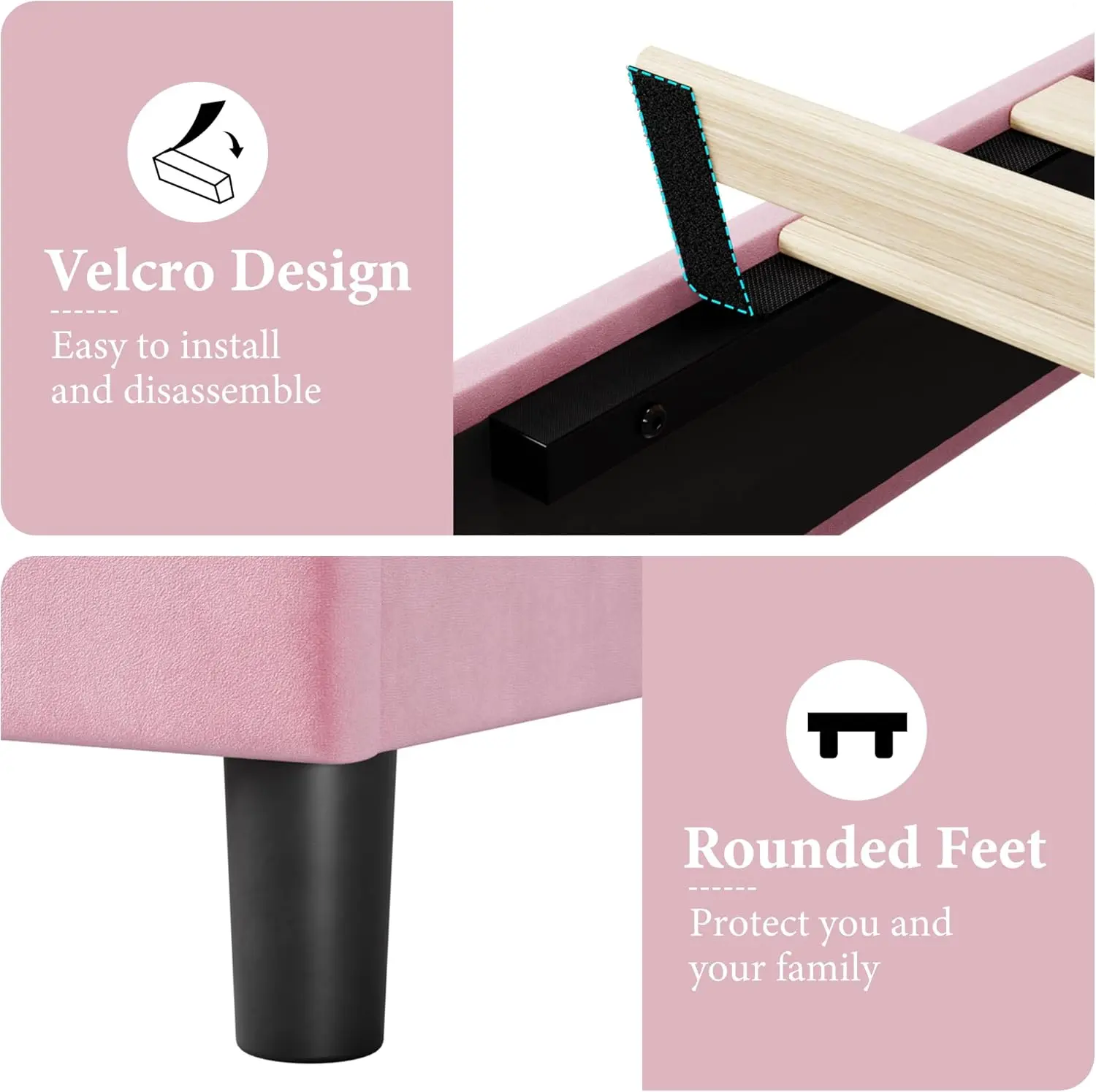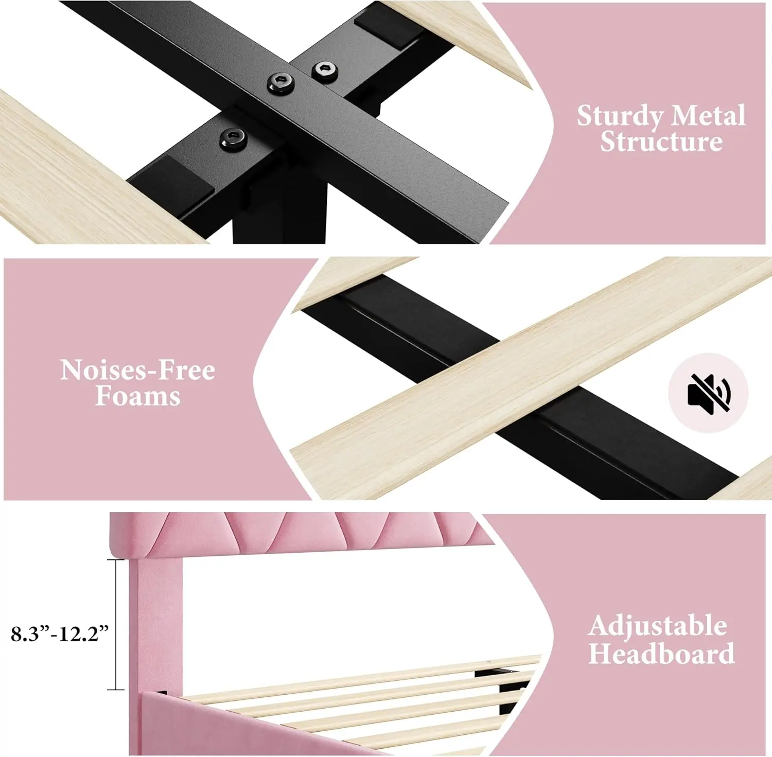5. Pink Twin Bed Frame with Upholstered Headboard Heavy-Duty Platform Bed Frame with Strong Wood Slats No Box Spring Needed/Noise Free/Easy Assembly