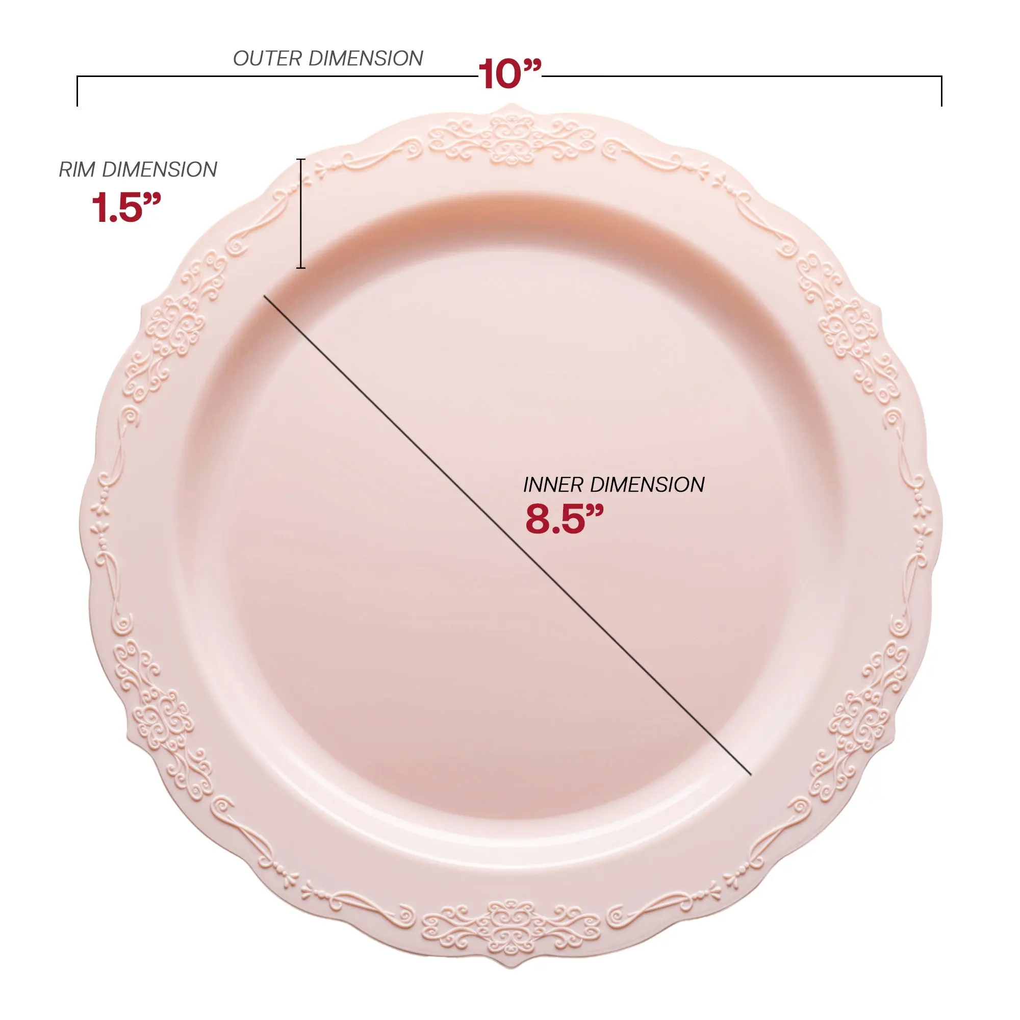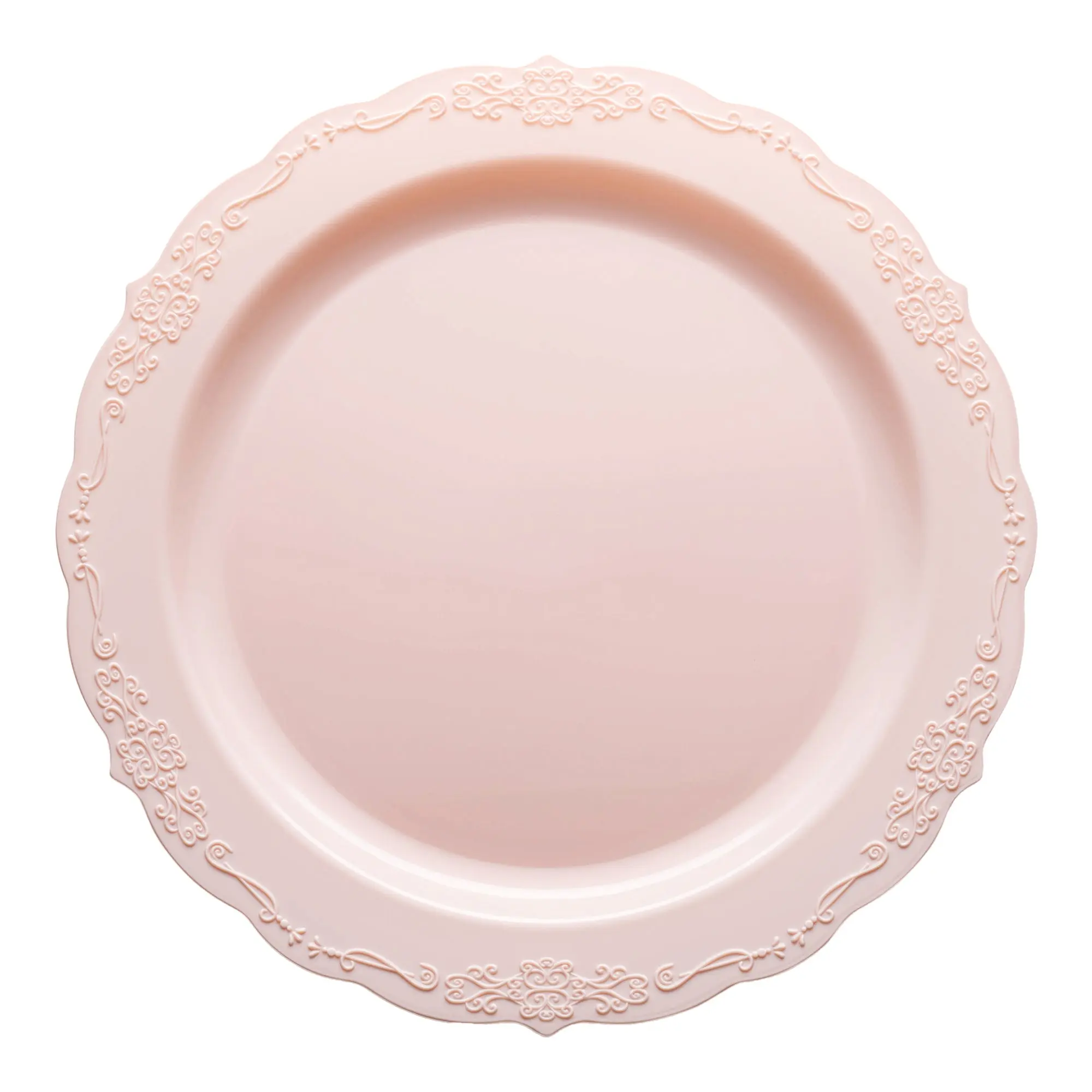 Product Name: Pink Vintage Round Disposable Plastic Dinner Plates (10")