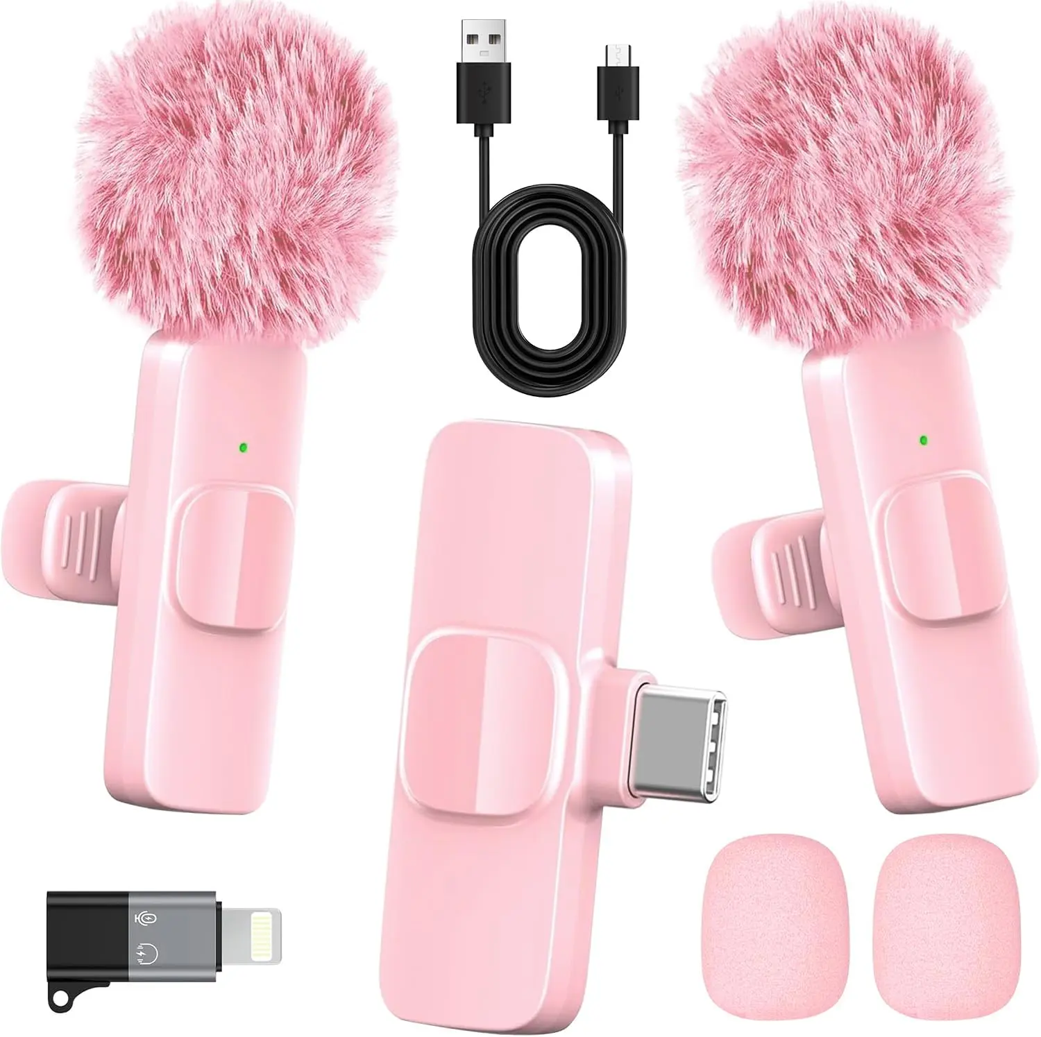 ·2-in-1 Fast Charging for iPhone & Android Dual Type-C ports charge 2 pink mini microphones simultaneously in just 1 hour. Enjoy 8+ hours total recording time by alternating mics - perfect for all-day live streams, TikTok videos, and podcasts.
