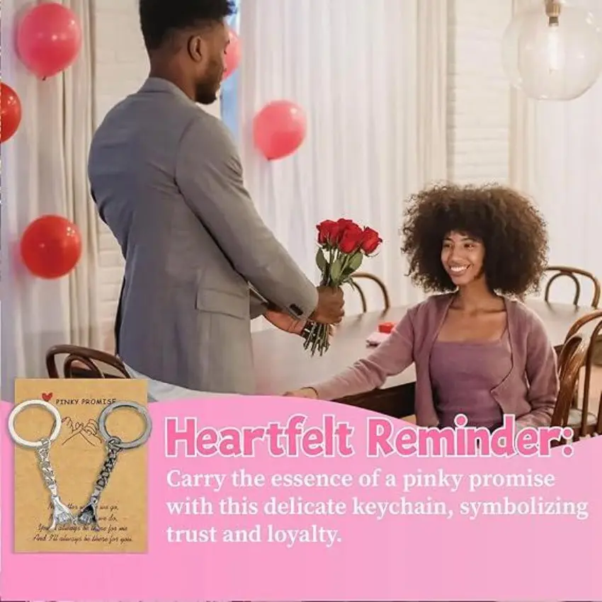 Perfect Gift for Couples Pinky Promise Gift is ideal for Valentine's Day, birthdays, or any special occasion. This matching keychain set is perfect for couples, boyfriends, girlfriends, and best friends. It's a thoughtful gift that shows your bond. Features Matching Keychains: Designed for couples, these keychains are a cute way to show your connection. Versatile Gift: Suitable for various occasions, including birthdays and Valentine's Day. Ideal for Couples: Perfect for wives, husbands, boyfriends, and girlfriends.
