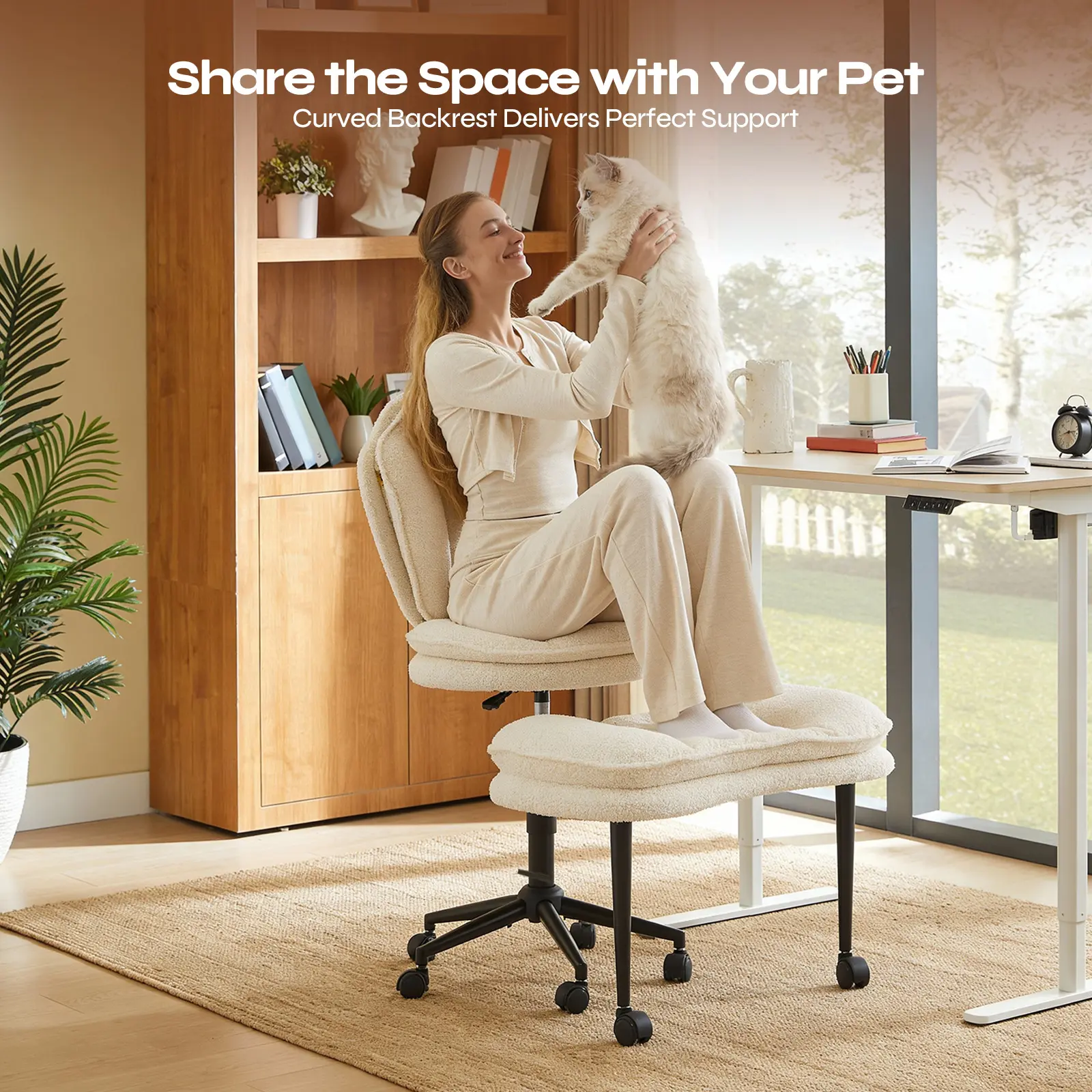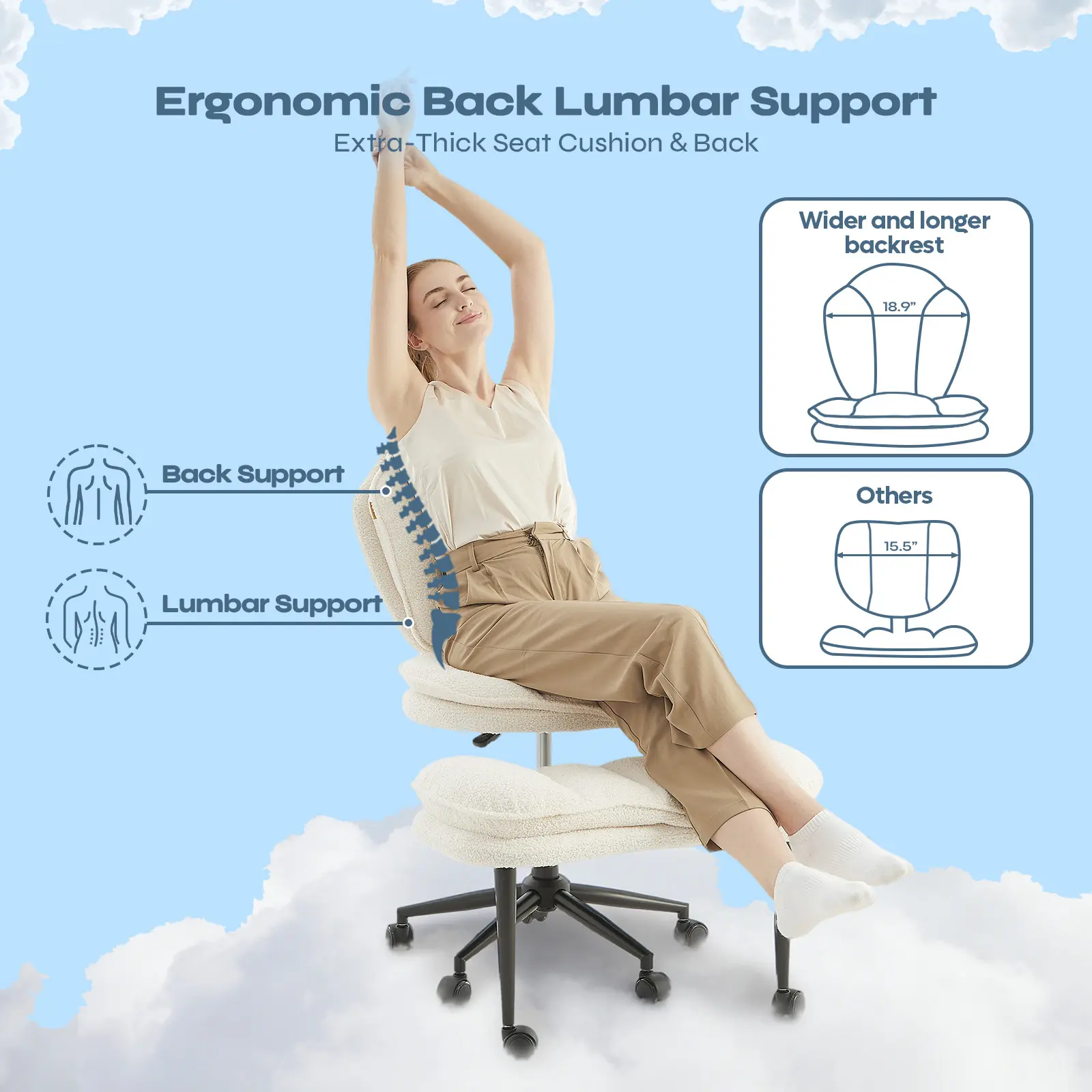 ·Ergonomic Wrapped Backrest: The curved backrest is contoured to cradle your spine, offering gentle lateral support that promotes a natural, healthy posture.