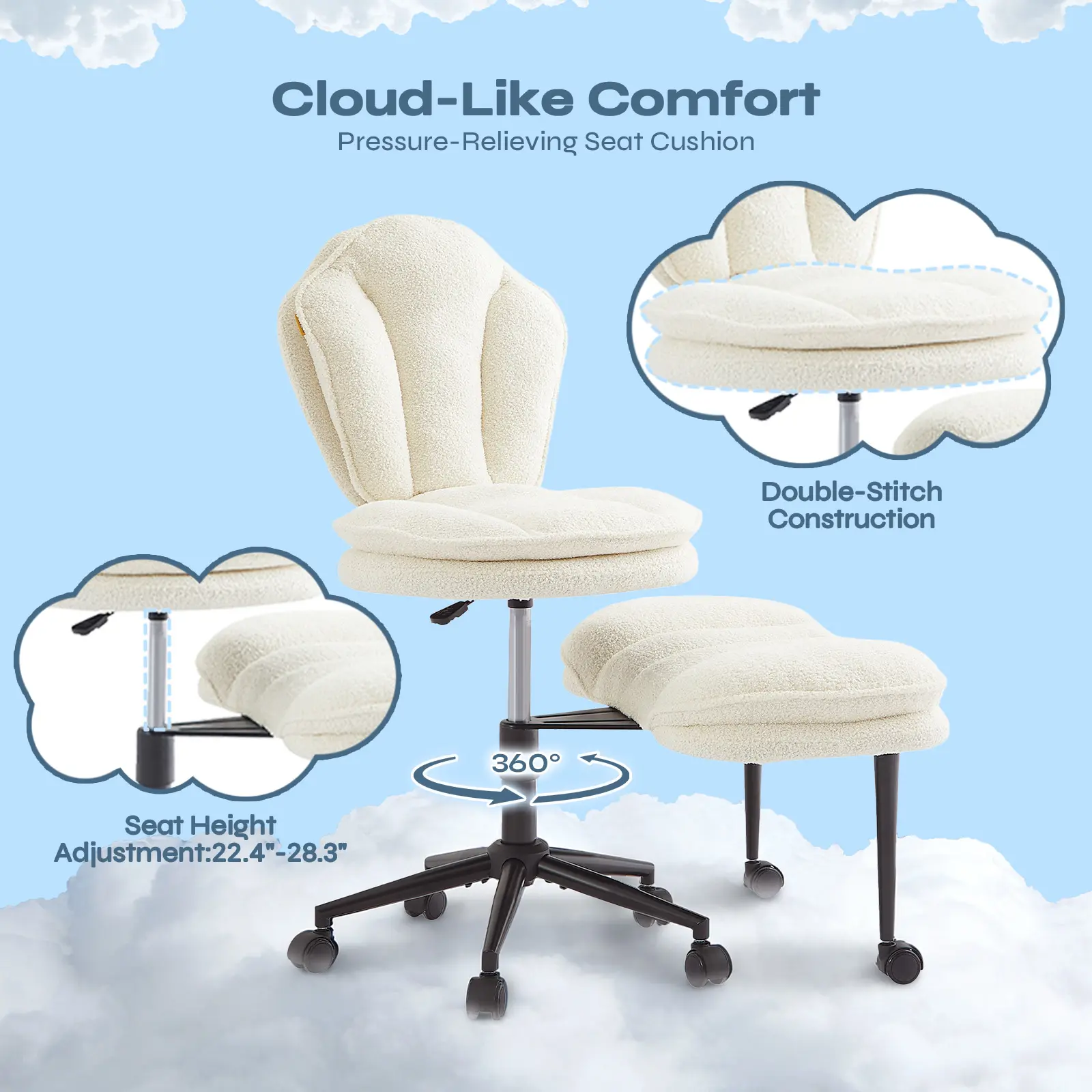 ·Dual-Layer Cloud Comfort Seat: Experience full lumbar support with thickened high-resilience foam in the seat, footrest, and backrest.