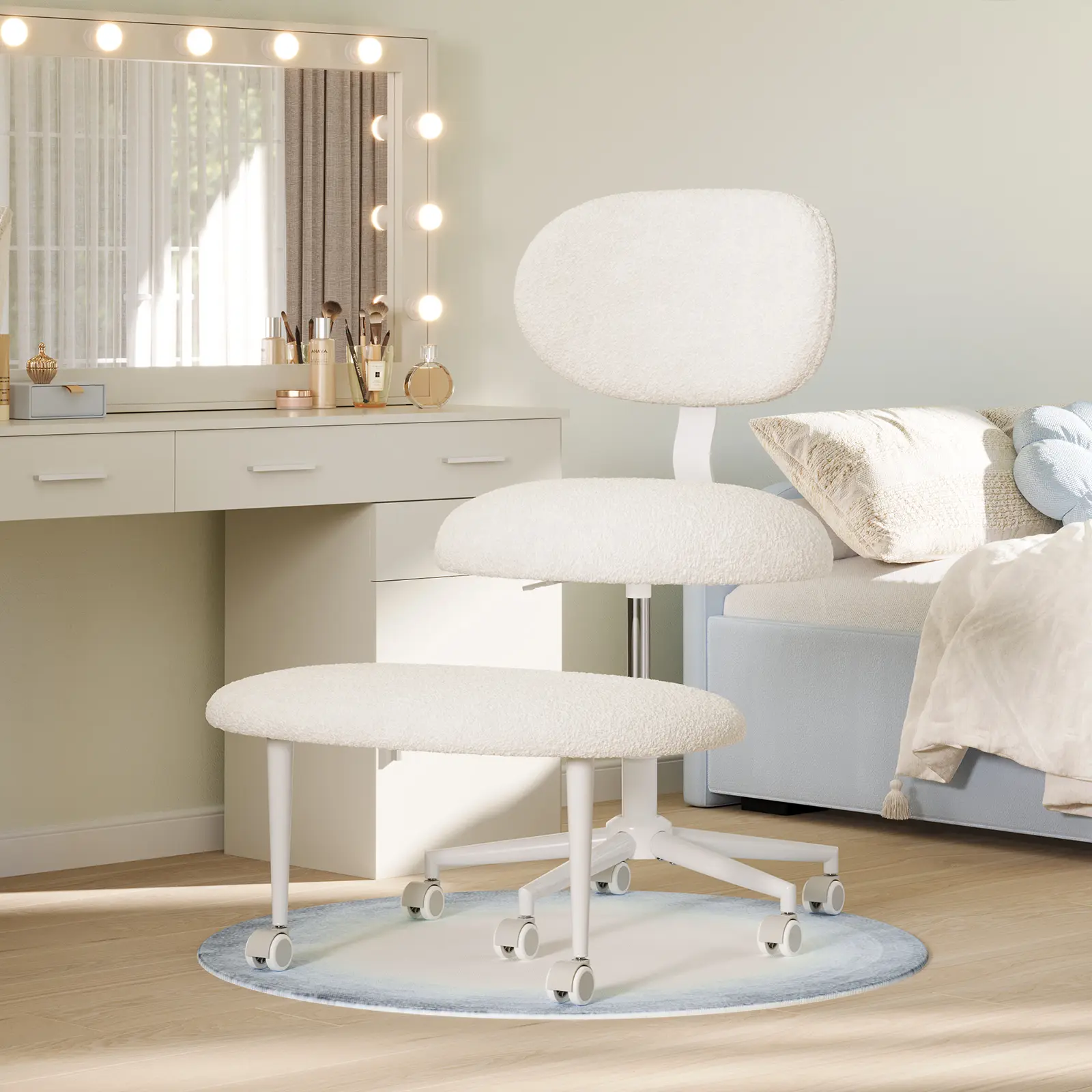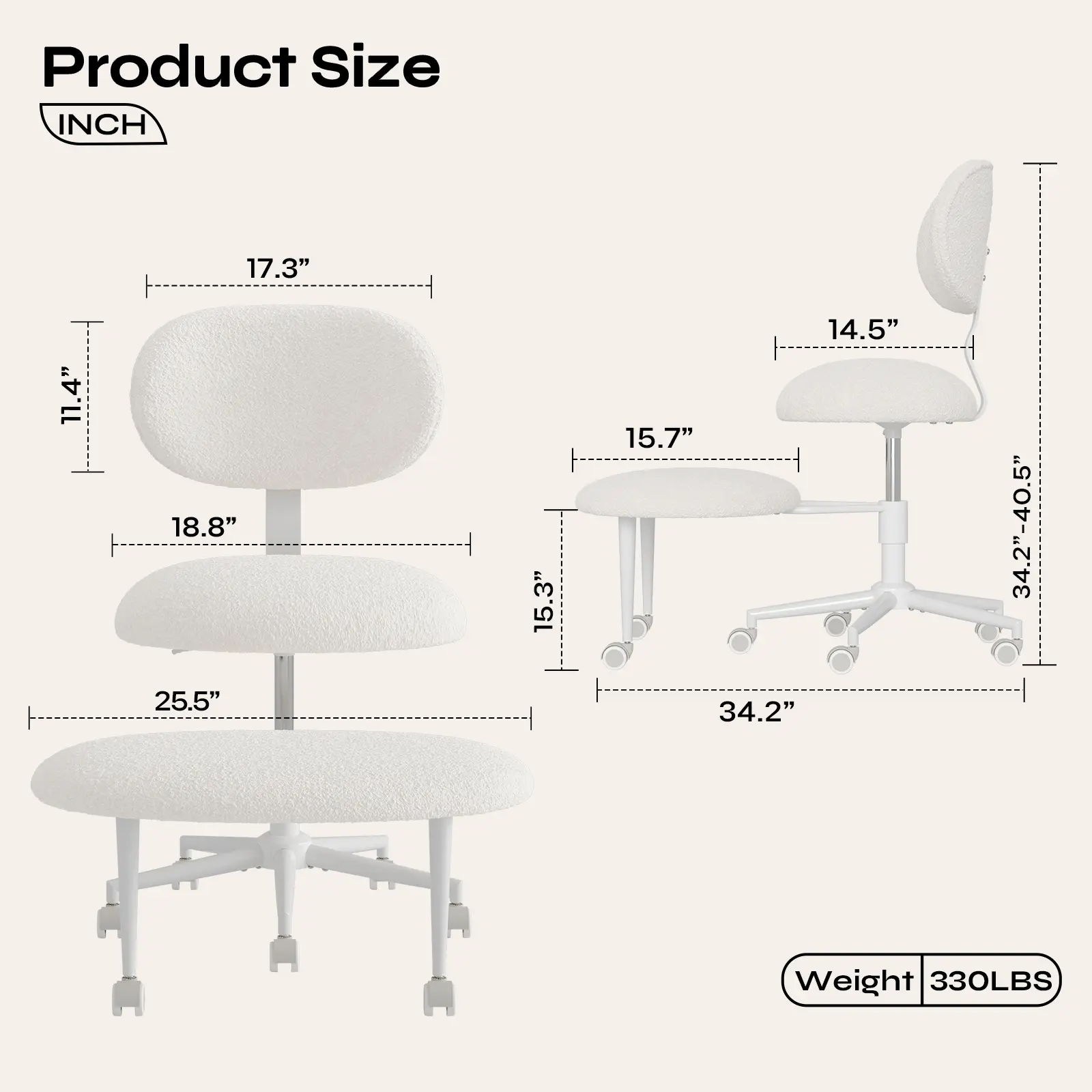·【The Perfect Chair for Small Spaces】 The 25.5 inch small footstool’s compact design without taking up too much room. Suitable for offices, bedrooms, living rooms, powder rooms. It’s the ideal small desk chair solution for tight spaces.