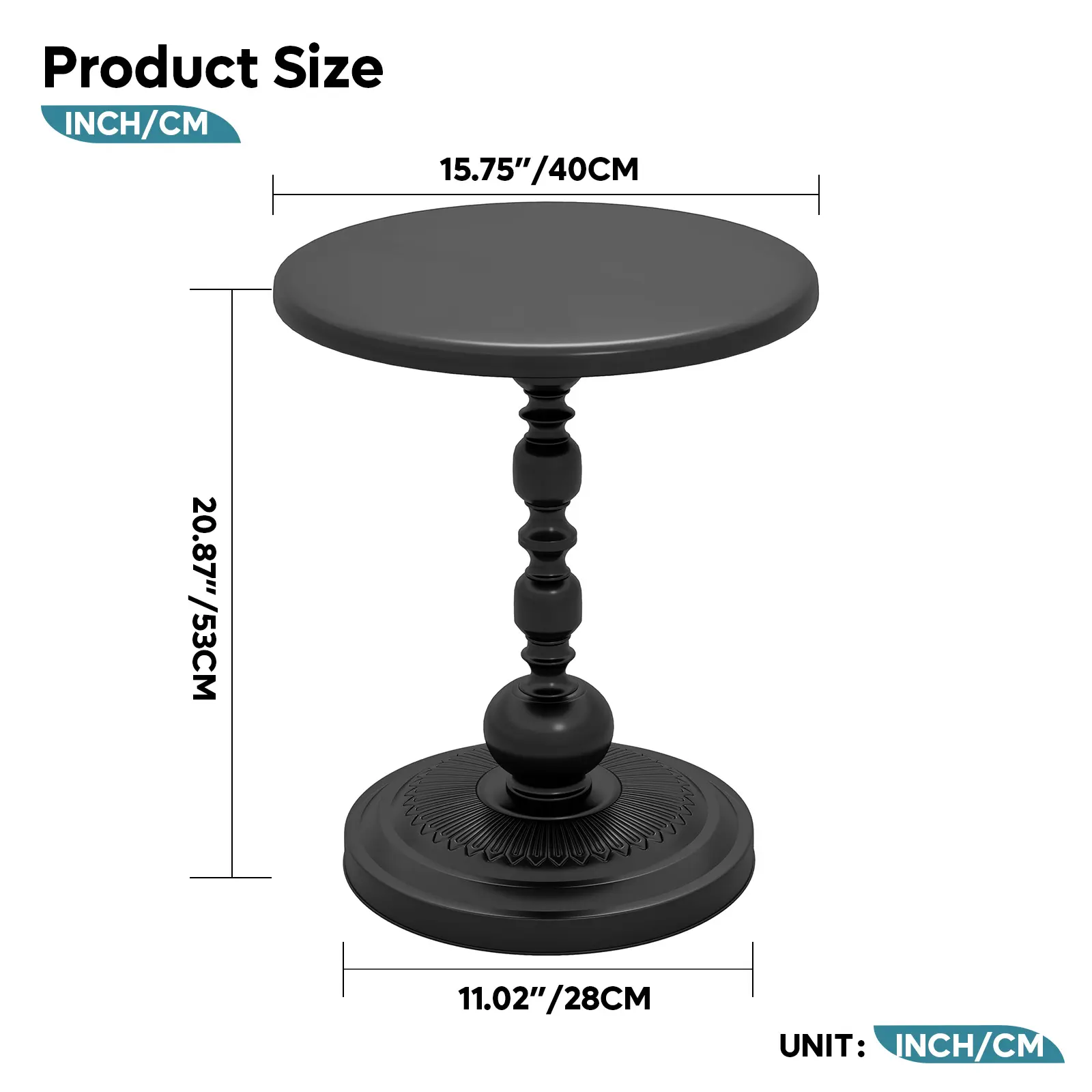 ·Pinmoco Round Side Table, Metal End Table, Anti-Rust and Waterproof Small Coffee Table for Living Room Bedroom Balcony