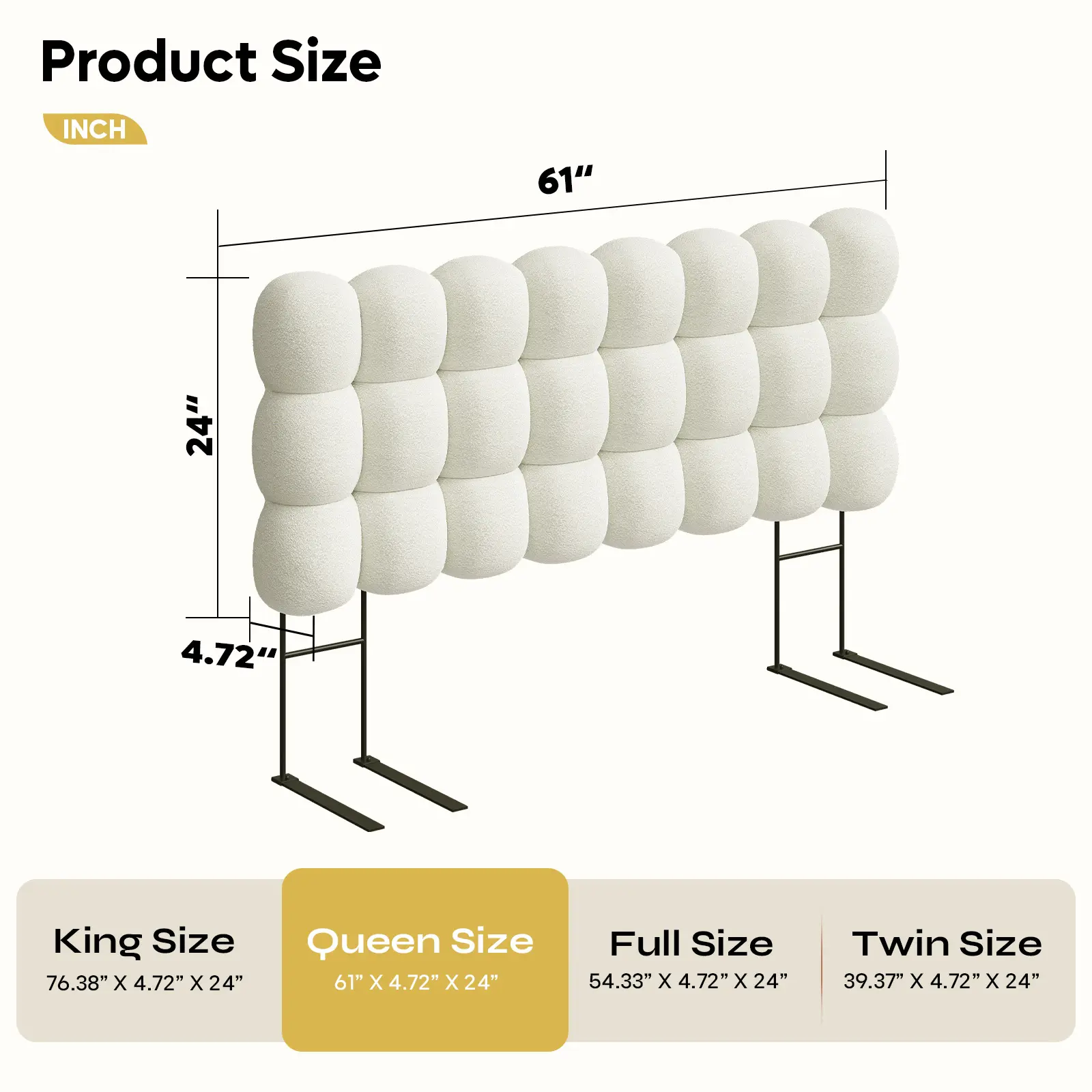 Sturdy & 5-Minute Easy Installation: Built with a durable frame design and sleek metal legs, this headboard offers stability and longevity. It comes with all necessary hardware for a quick, 5-minute hassle-free setup.