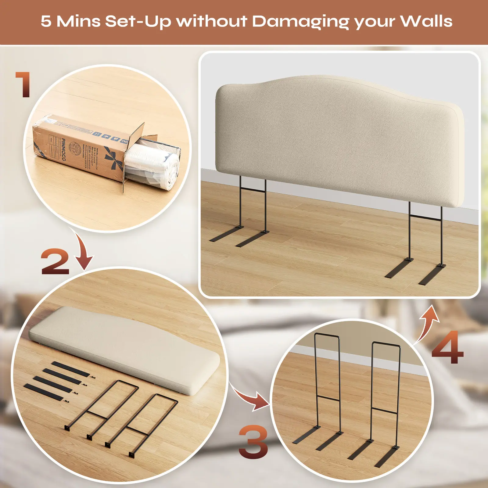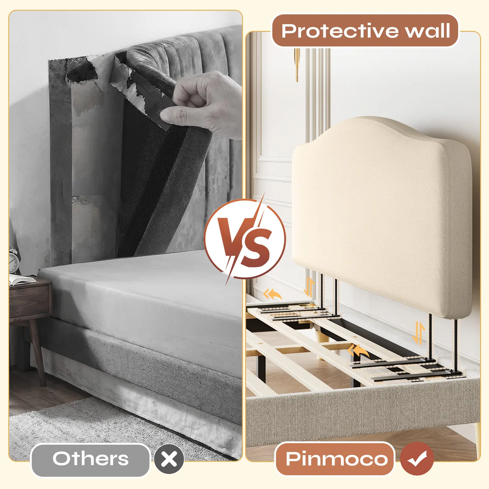 Installation Without Damage: Pinmoco upholstered headboard can be placed directly beneath the mattress, guaranteeing that walls and floors remain unharmed.