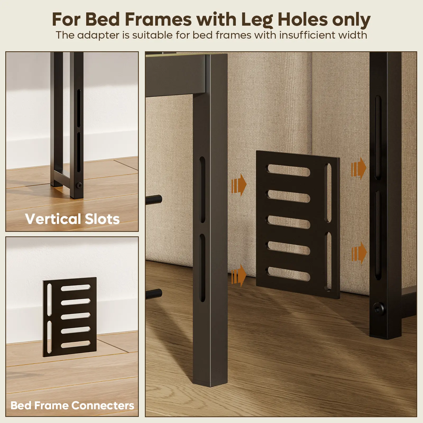 ·Fits More Sizes of Bed Frames: The headboard is made of quality particleboard and strong metal frame, firm and stable. No wobbling or noise. It also comes with 2 bed frame adapters for easy connect to bed frame. The connectors are adjustable and suitable for bed frames of various sizes and styles without purchasing additional accessories.