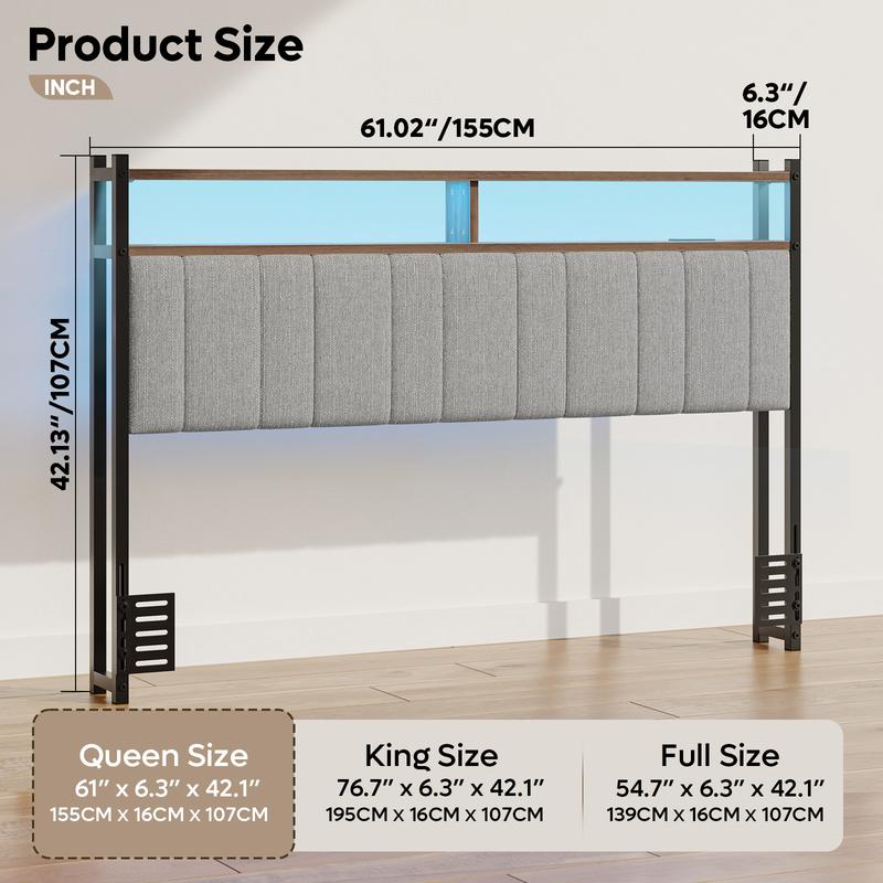 ·Pinmoco Upholstered Headboard with Storage, Linen Head Board with LED Light and Charging Station.