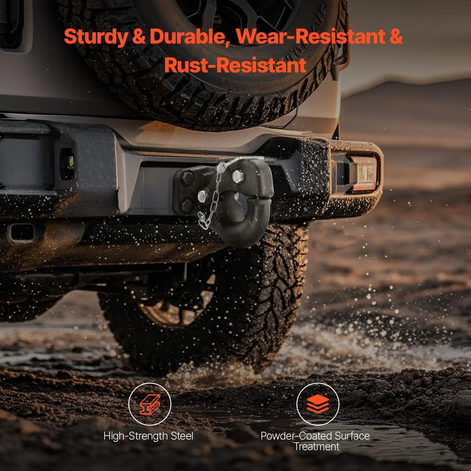 • Premium Durability: Forged from 45# high-strength steel, our pintle hook features a powder-coated surface that enhances rust and wear resistance. The heat-treated hook further extends its lifespan.