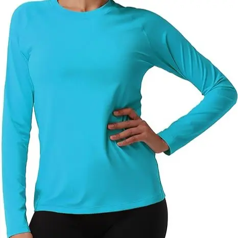 ·4-WAY STRETCH: These long sleeve workout tops for women are made of lightweight, breathable and 4-way stretch fabric, ultra soft to skin and stretchable in all directions, maximizing your comfort and flexibility during outdoor activities like running. Perfect not only as athletic wear but also as water swim shirt and casual clothes.