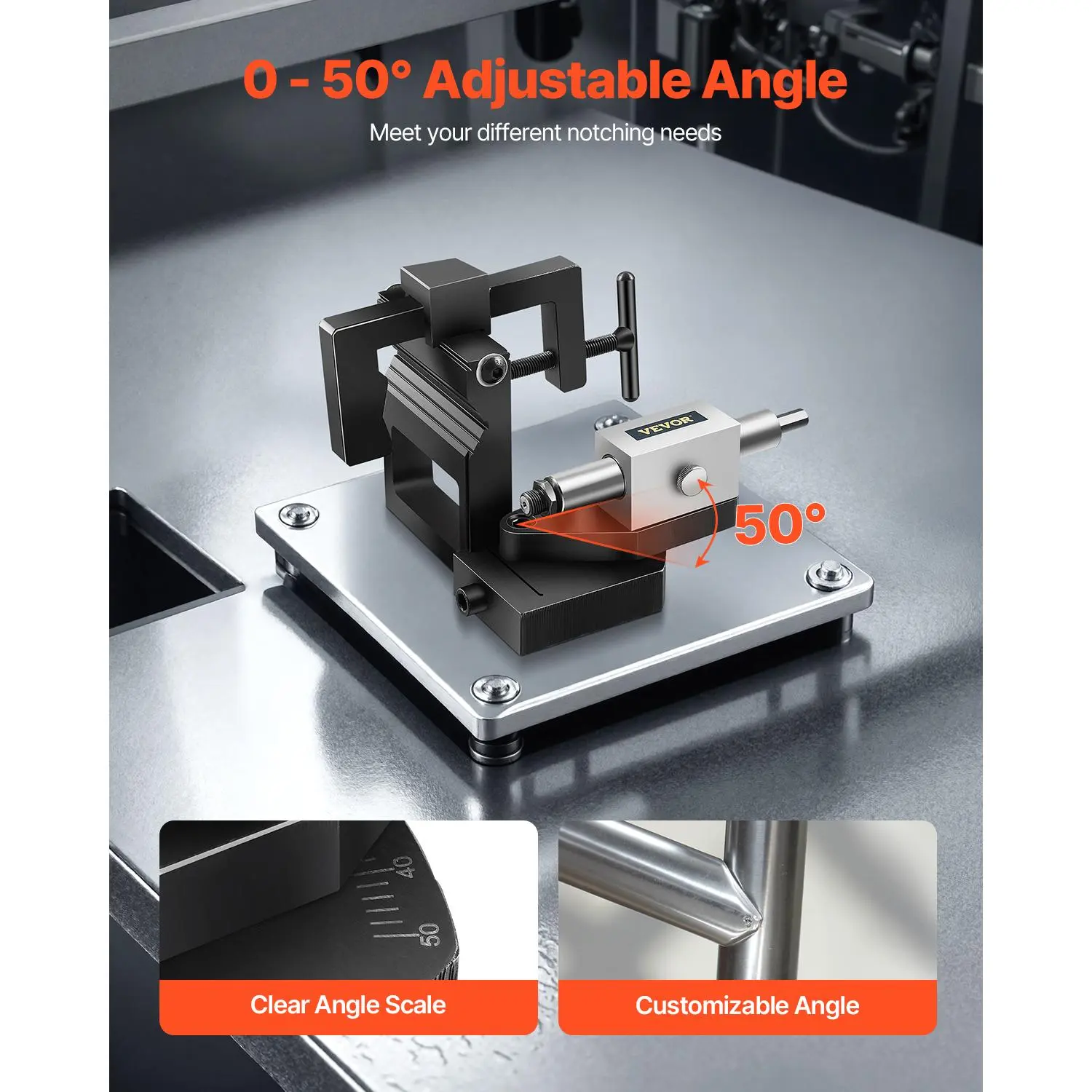 • Flexible to Adjust: Featuring a 0-50° adjustable angle, this tubing notcher allows for easy customization with the clear scale for precise adjustments, ensuring accurate results with minimal effort.
