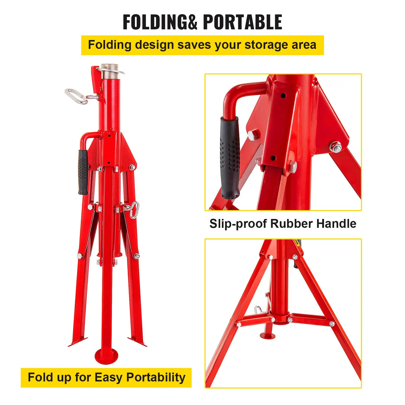 ·Folding & Portable Design: The whole jack stand with a folding design makes storage won't take much space. The slip-proof rubber handle allows you to carry it easily.
