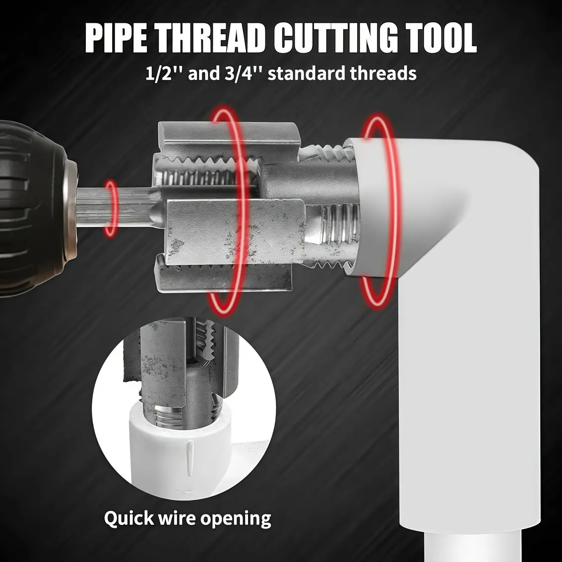 Pipe Thread Processing Tool Set, Hand Tools, Integrated Internal & External Thread Tools, Fits 1/2 Inch, 3/4 Inch, 1 Inch Pipes, Metal Material