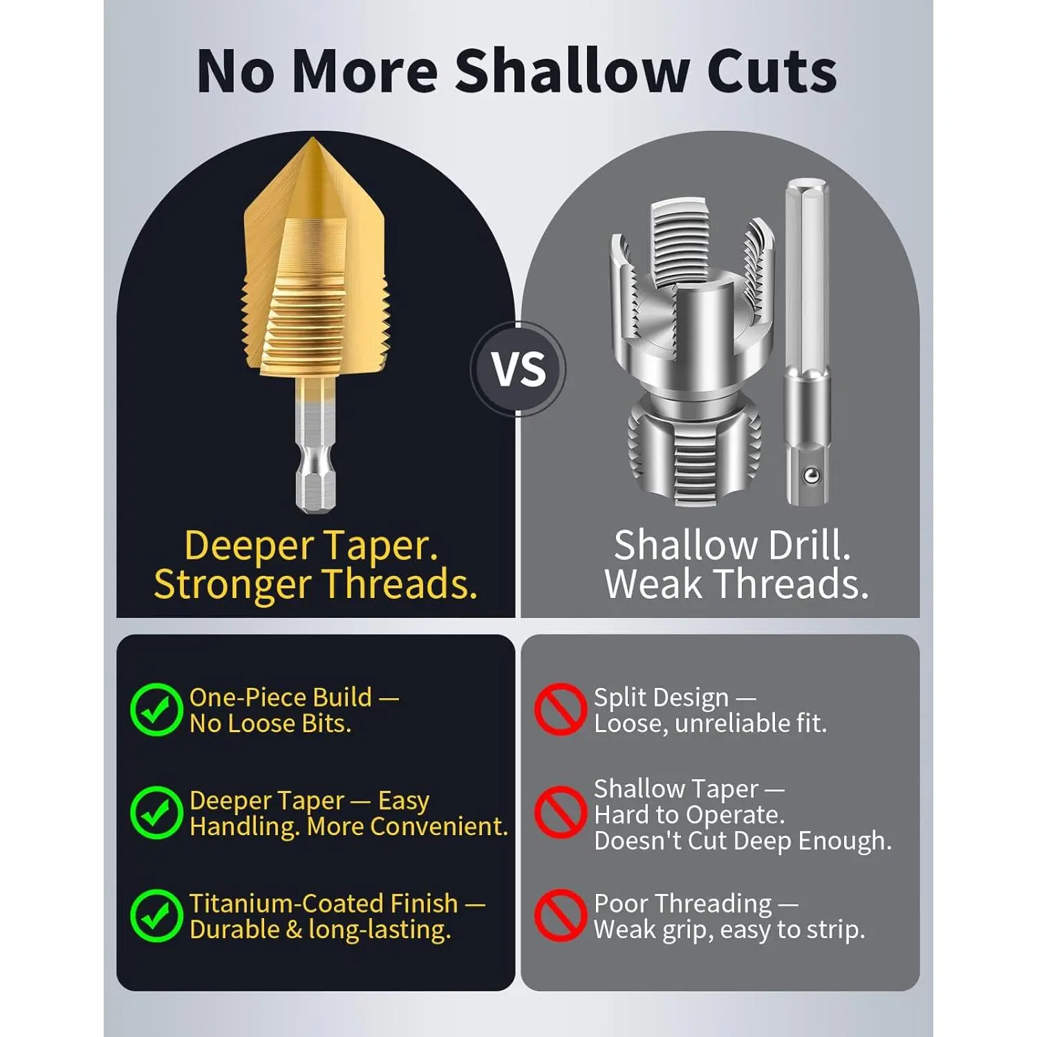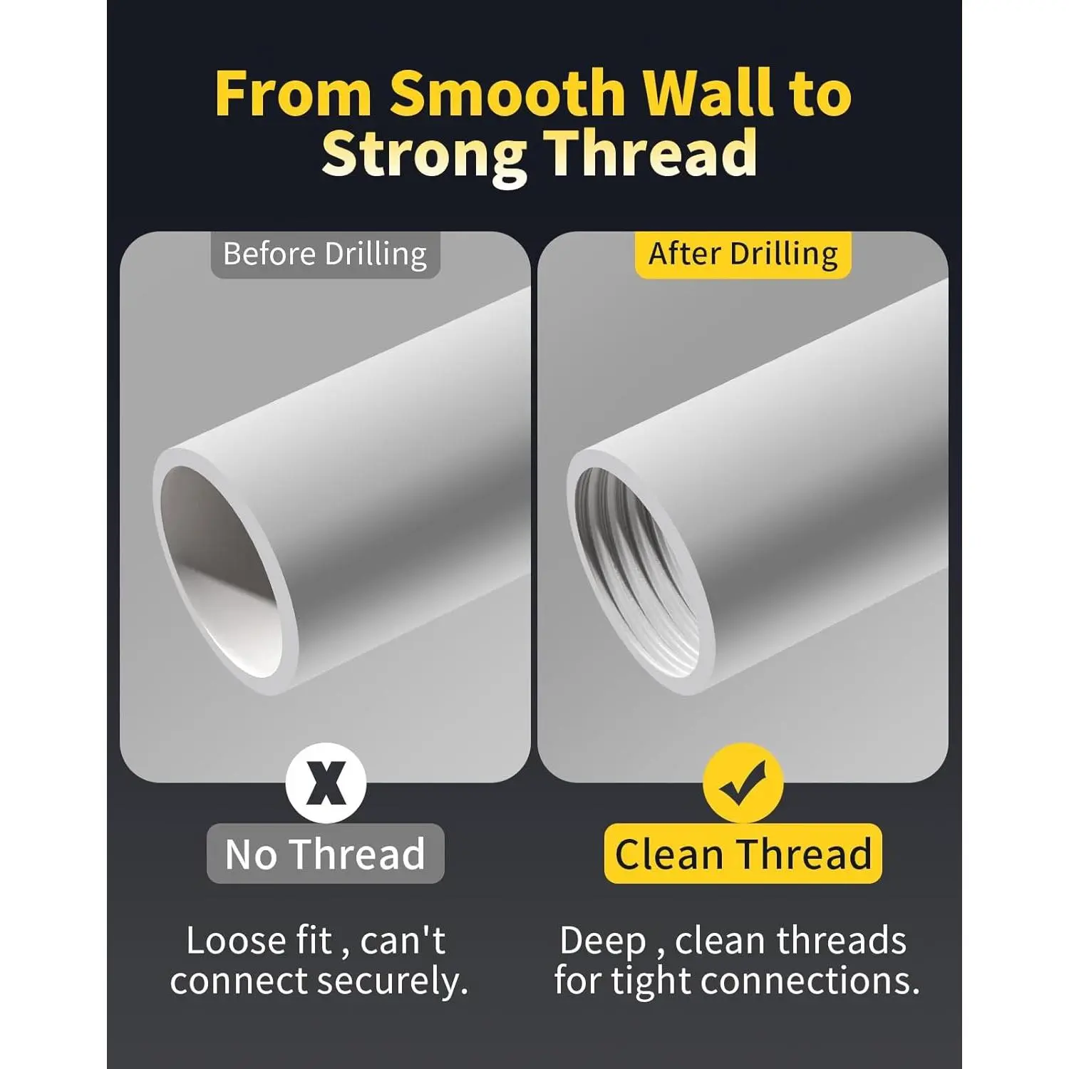 Integrated Titanium-Plated Pipe Tool for Smooth Threading:This - pipe tool fits 1/2" and 3/4" pvc pipes and delivers internal threading. The titanium coating resists wear and keeps edges for long-lasting performance.