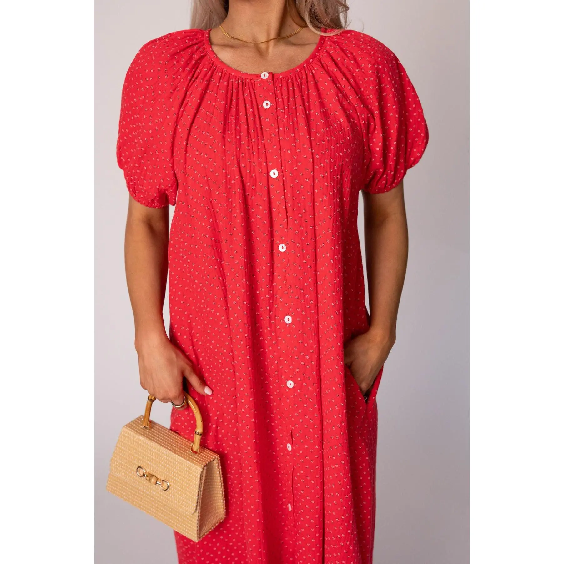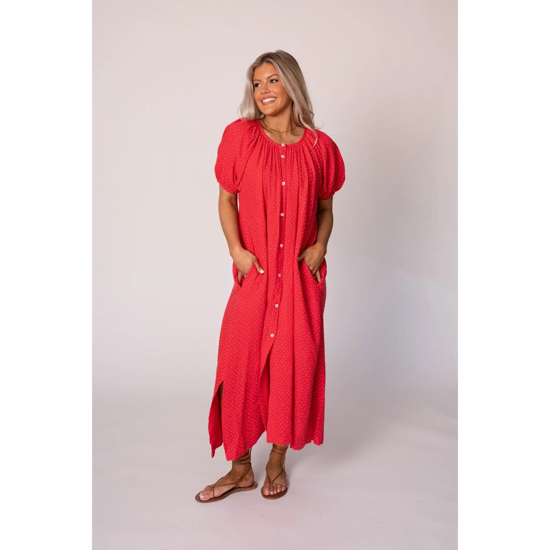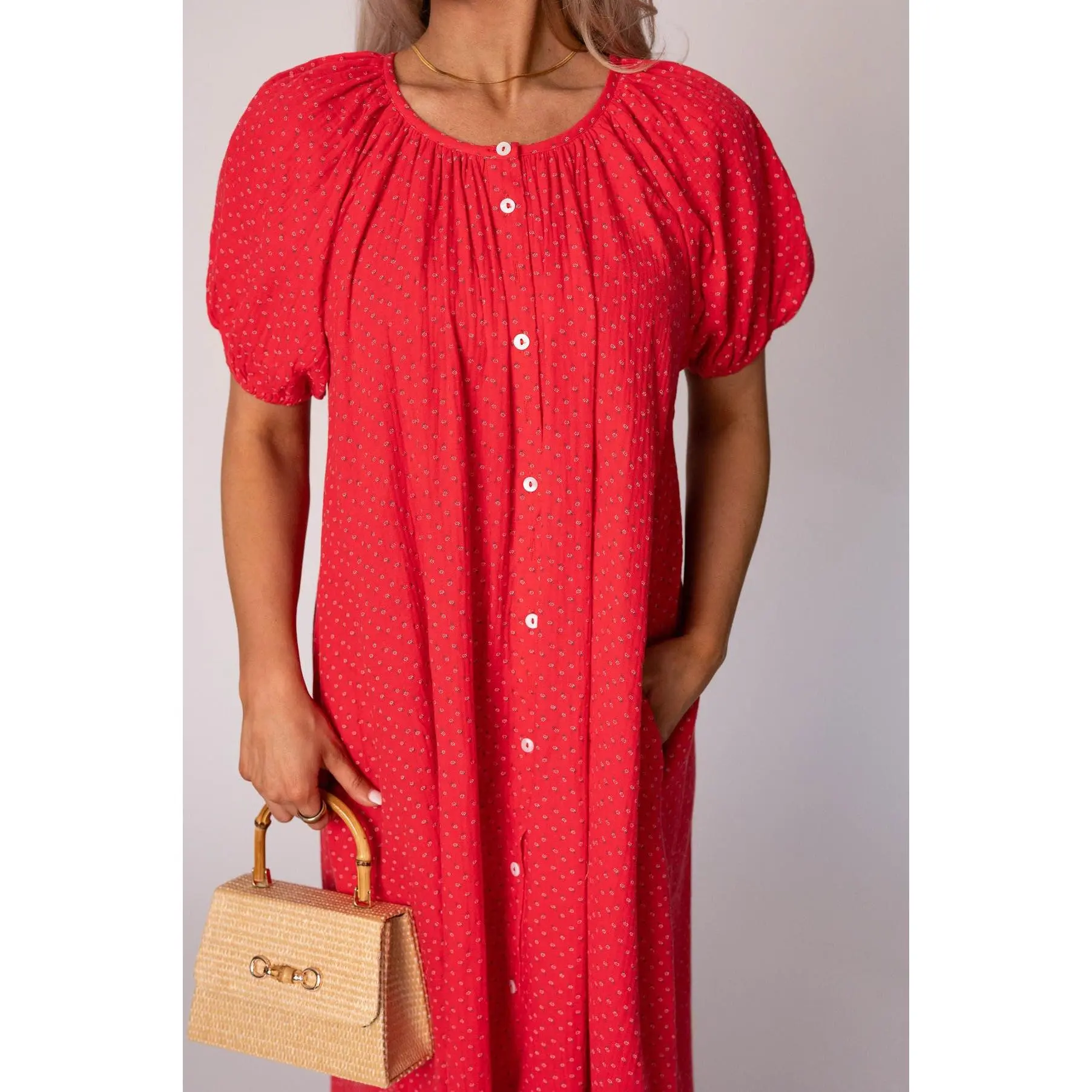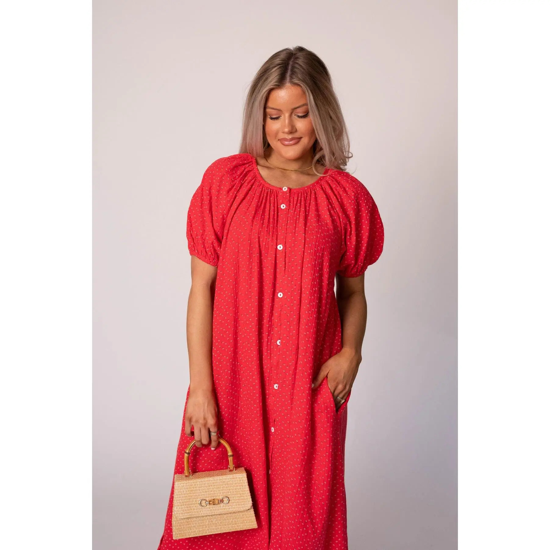 5. Piper Cotton Gauze Dress-Red