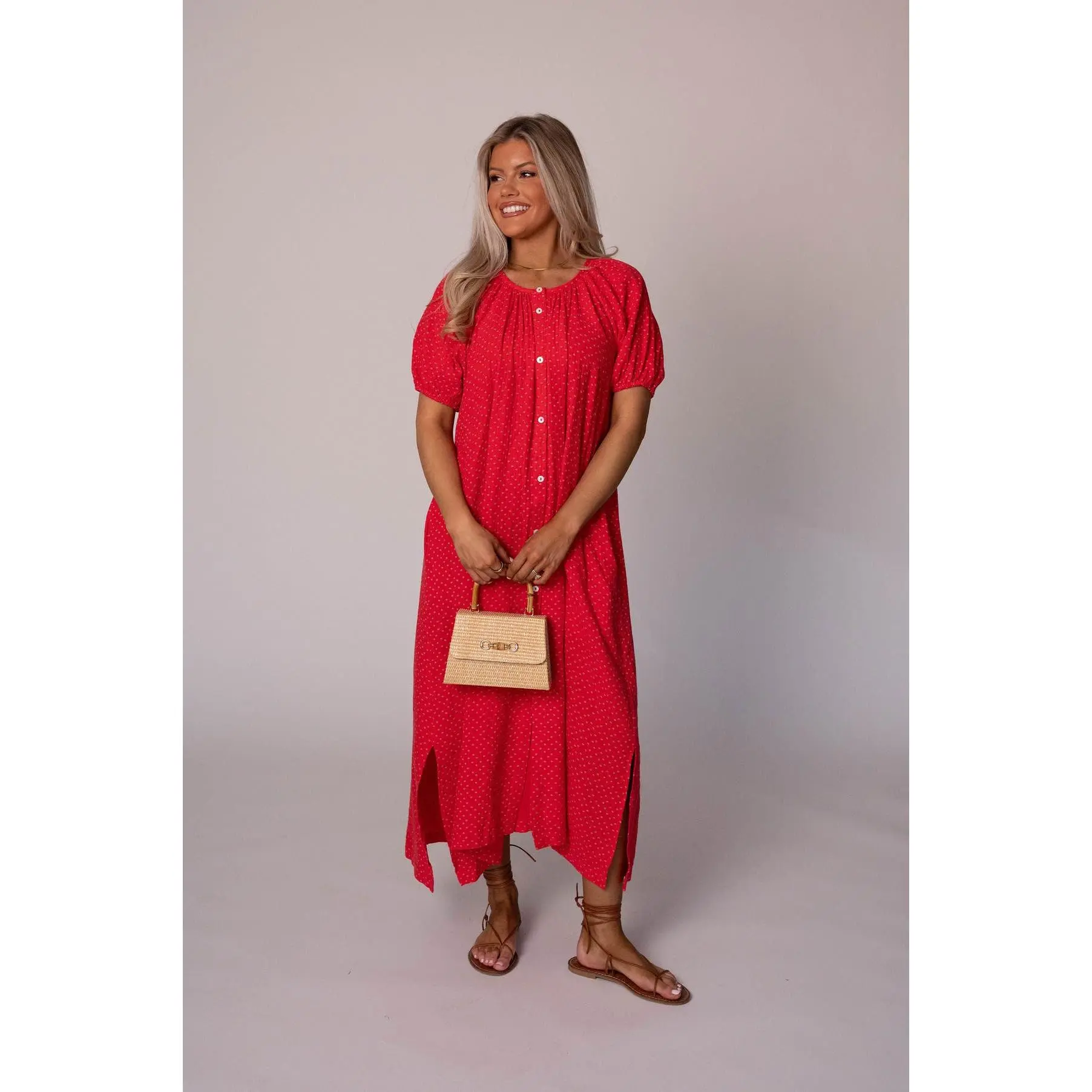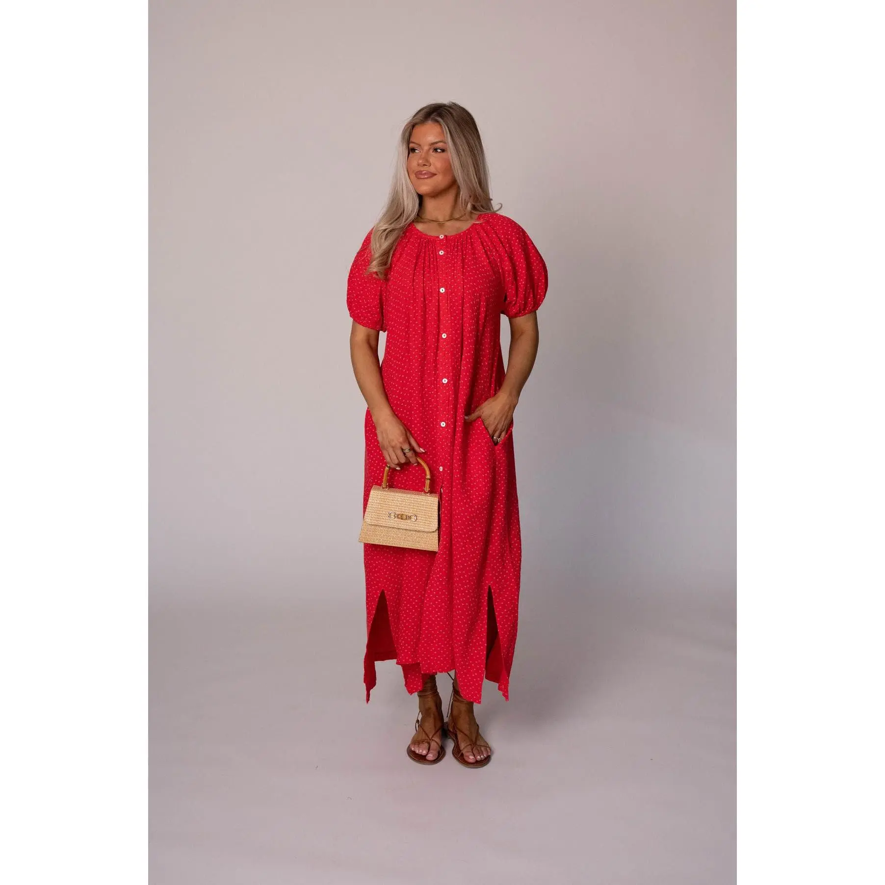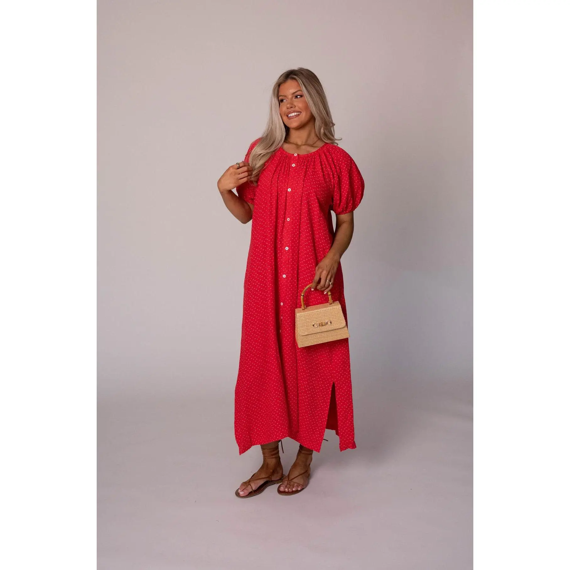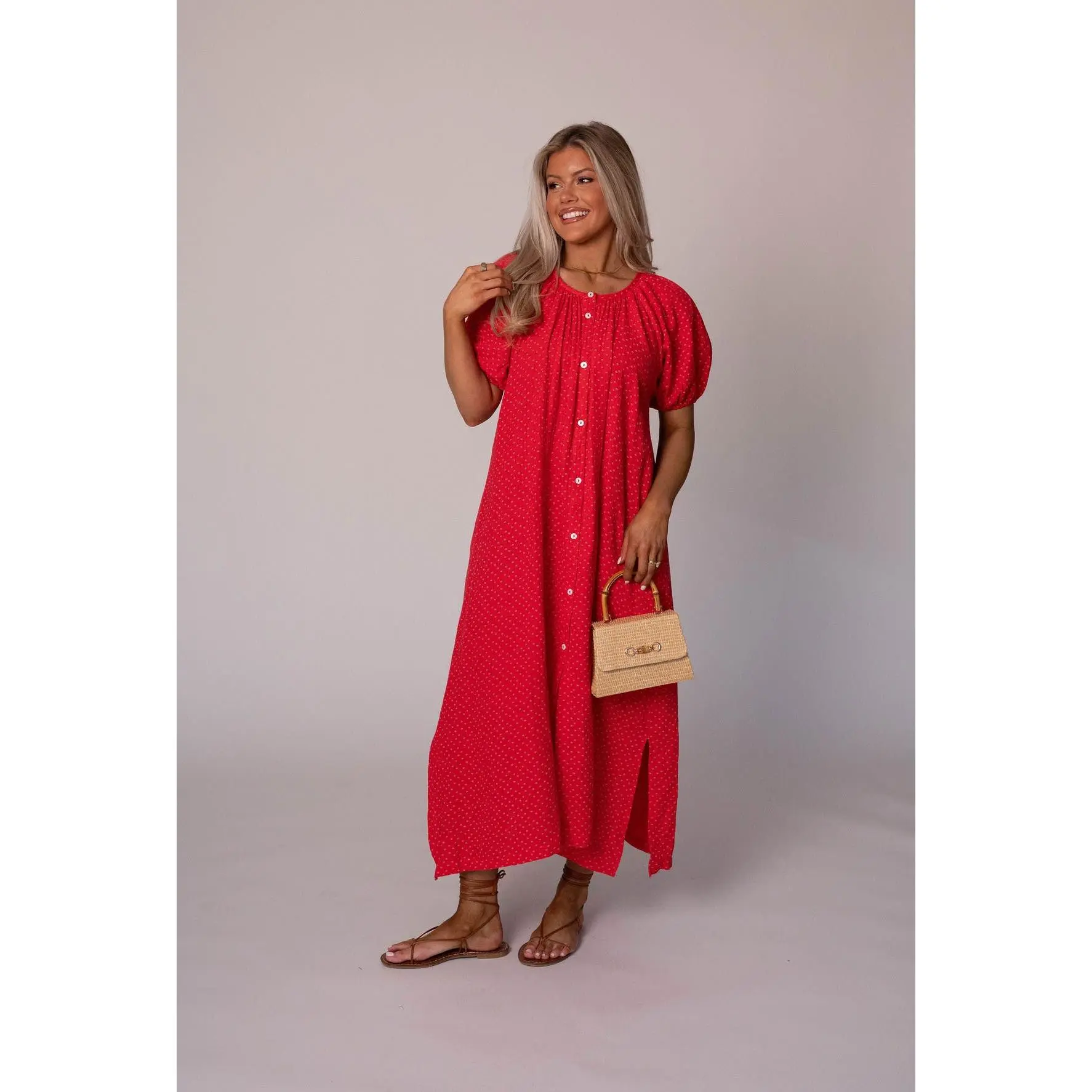 5. Piper Cotton Gauze Dress-Red
