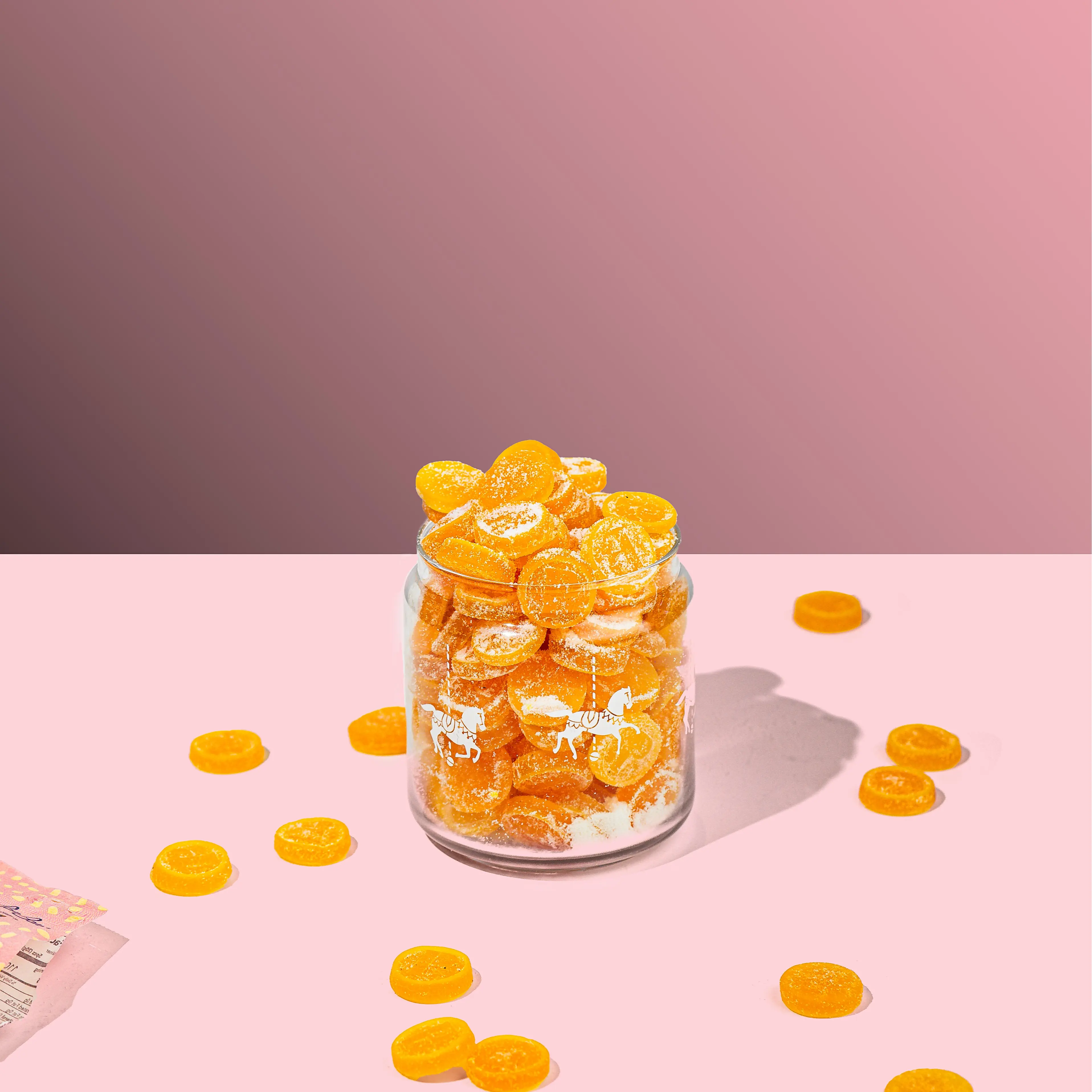 Inspired by the adventurous Pippi Longstocking, these Gold Coins are a treasure of tropical flavors! Each coin is a soft, chewy delight, bursting with pineapple and peach-apricot flavors, finished with a tangy sour coating. It’s a sweet and sour adventure in every bite!