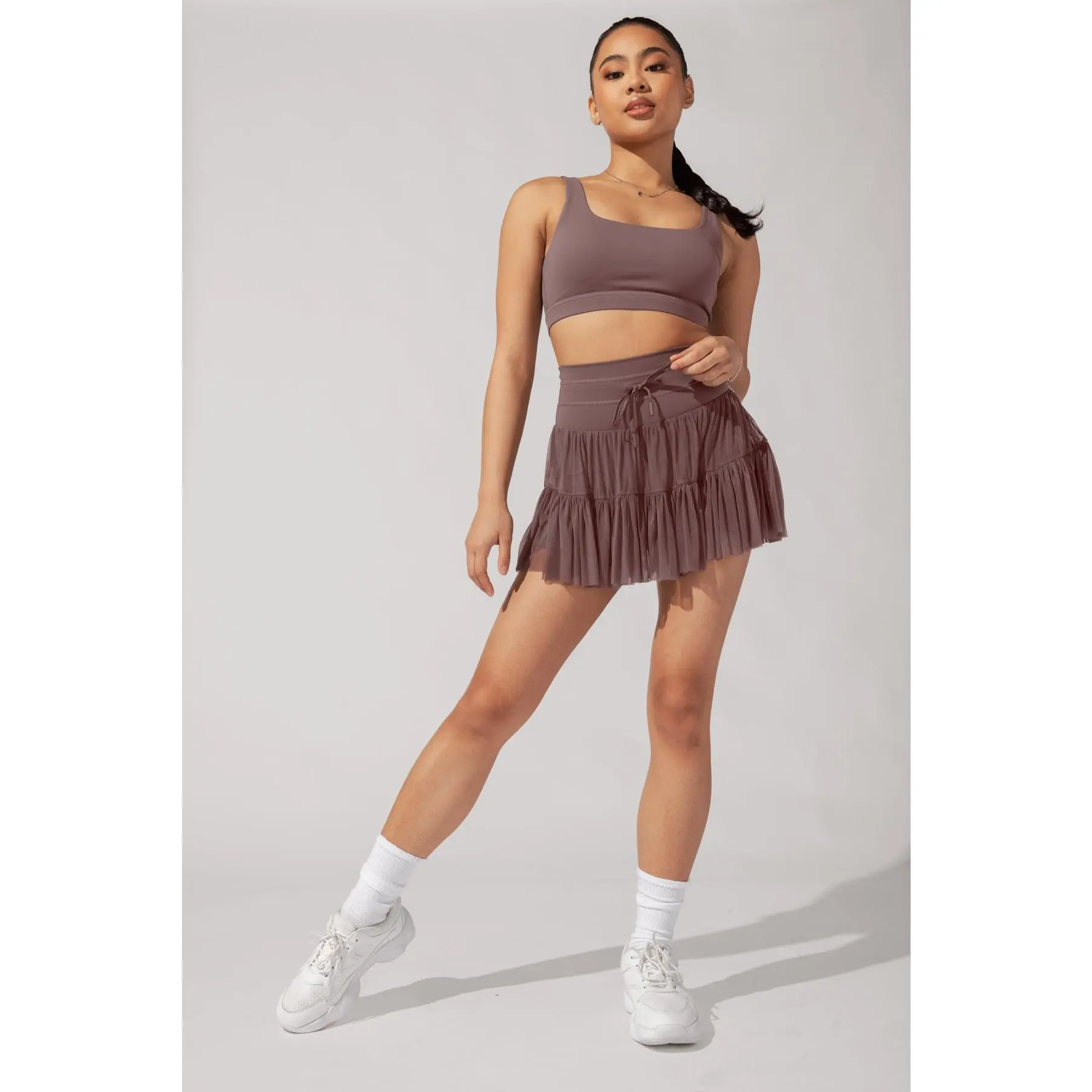 Fits like a glove. Love the flowy of it. You can even dress up casually with a nice top or simply go to the gym. Either way, you will look super cute in it!