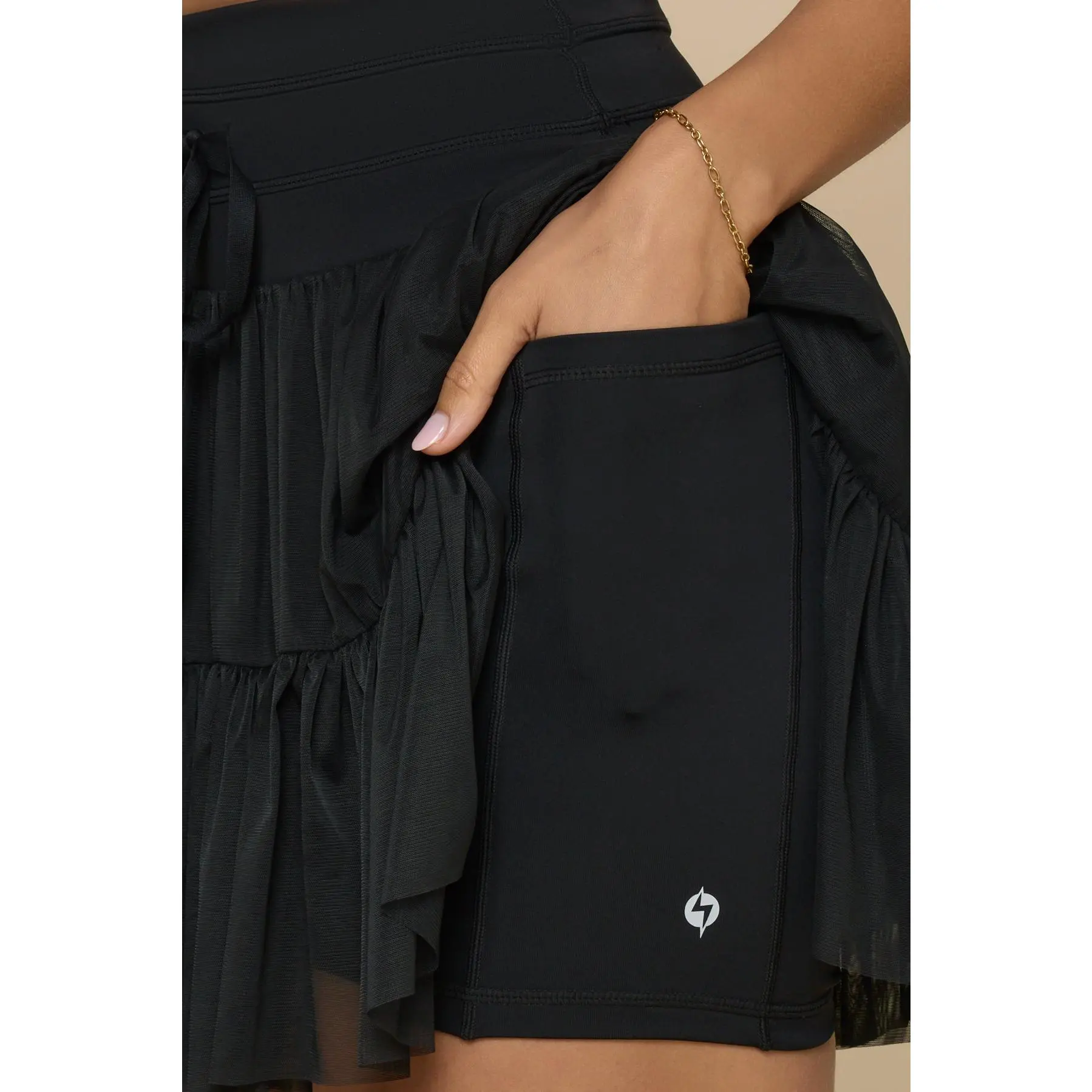 I love everything about this skort! It's the right length now that it's longer. I have to Blogilates brand one from Target also, and this one is obviously so much higher quality! The mesh feels like it won't rip easily. And the pockets are so big my phone falls to the bottom! They don't ride up in the shorts or fall down in the waist. I work in an elementary school and I can wear this to work and I get so many compliments!