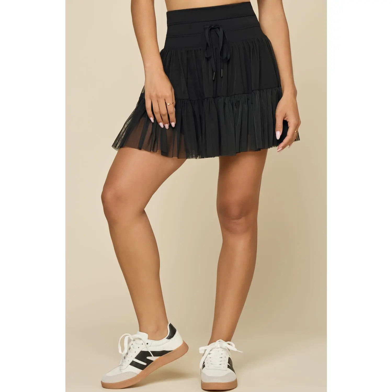 The color and fabric are amazing. The waist is flattering and I love the pockets. The tulle skirt makes this such a cute piece and I think this is the perfect length to dress up or down compared to the shorter version (but that is my preference!). If you are in between sizes I recommend sizing up