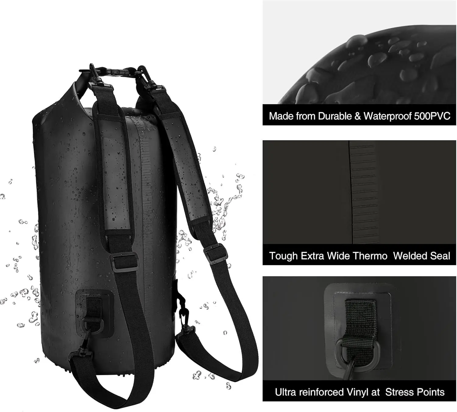 ·Convenient Shoulder Strap: These dry bags have adjustable double shouldered straps which provide safety and stability while wearing the bag. These sturdy straps help the bags in not slipping off the shoulders during the water activities