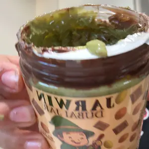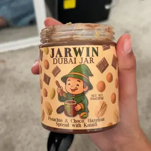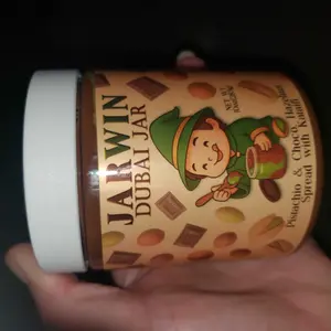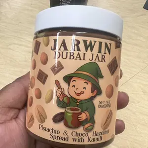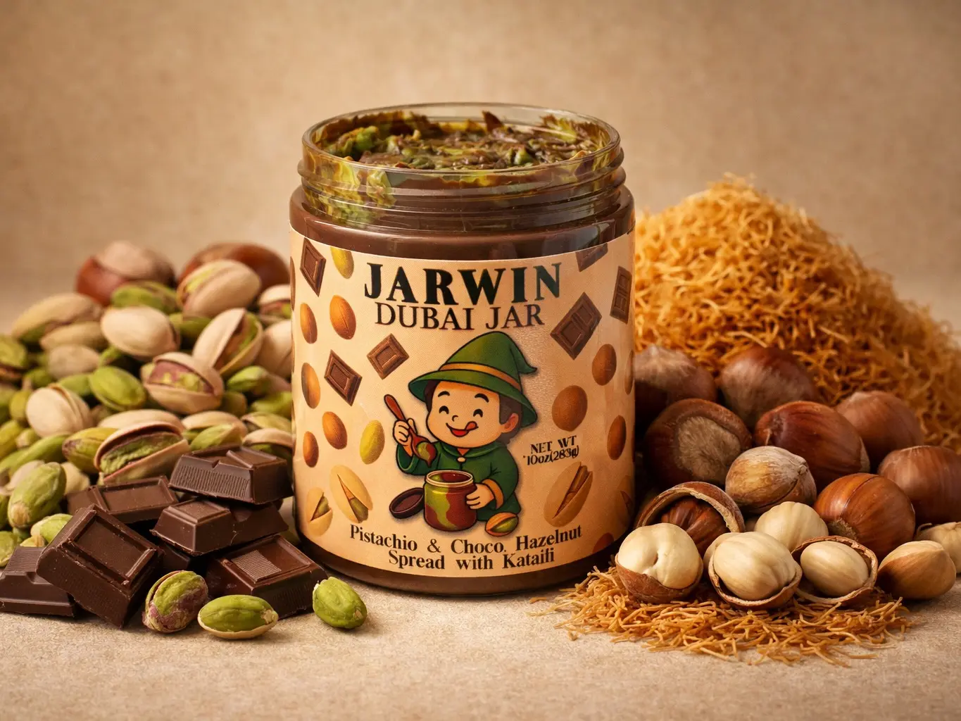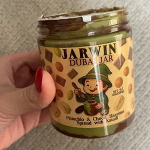 Indulge in the JARWIN Dubai Jar, a 10oz premium pistachio cream with kunafa & chocolate hazelnut layers. This handmade luxury dessert jar is inspired by Middle Eastern gourmet spread. Perfect as a gift, it offers a premium pistachio hazelnut indulgence. 🍫