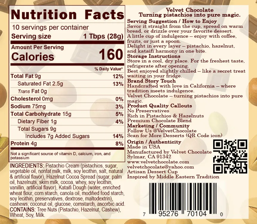 Each 10oz jar is prepared with only the highest-quality ingredients, no preservatives, and inspired by the luxurious dessert culture of Dubai.