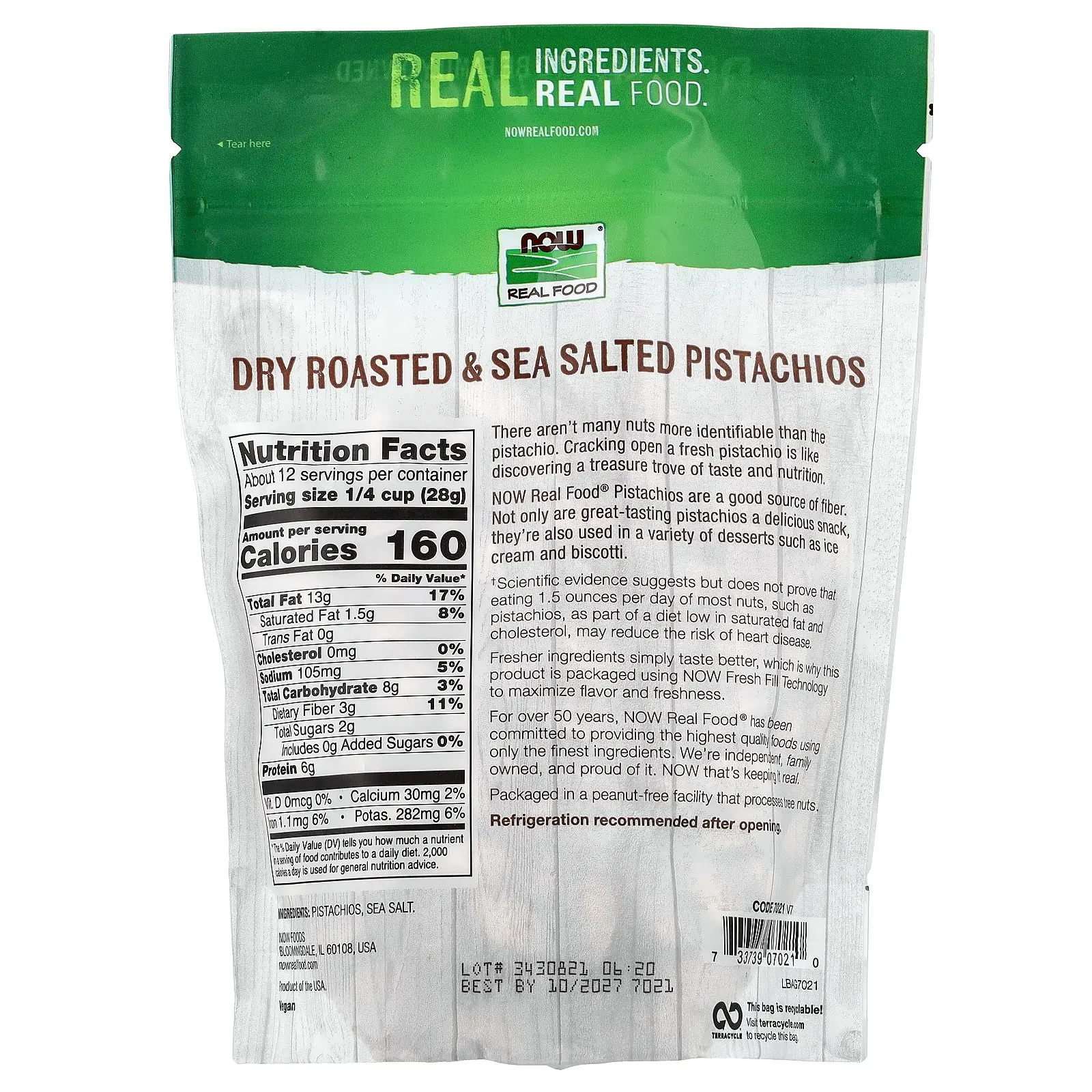 NOW Foods Real Food, Pistachios, Dry Roasted & Sea Salted, 12 oz (340 g)