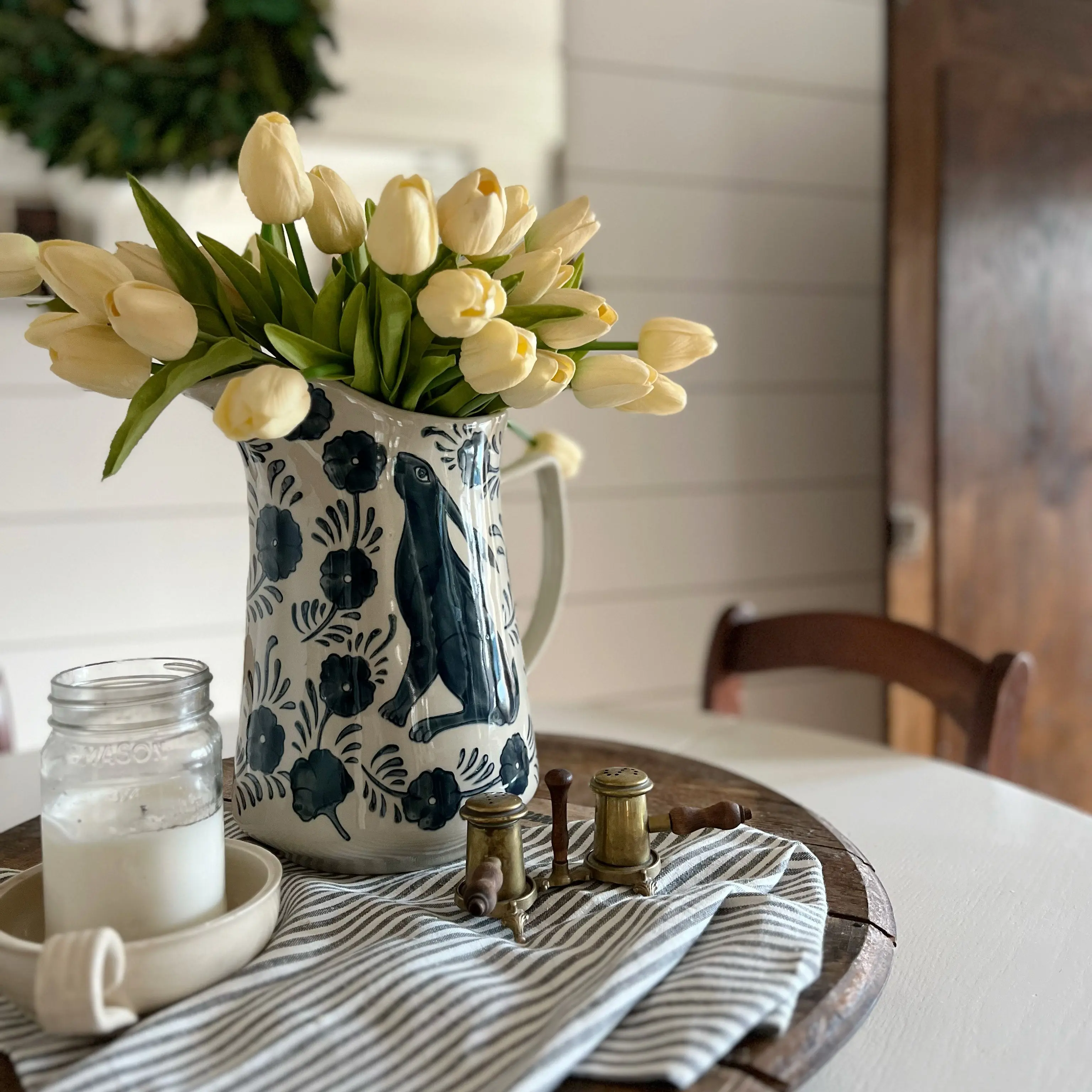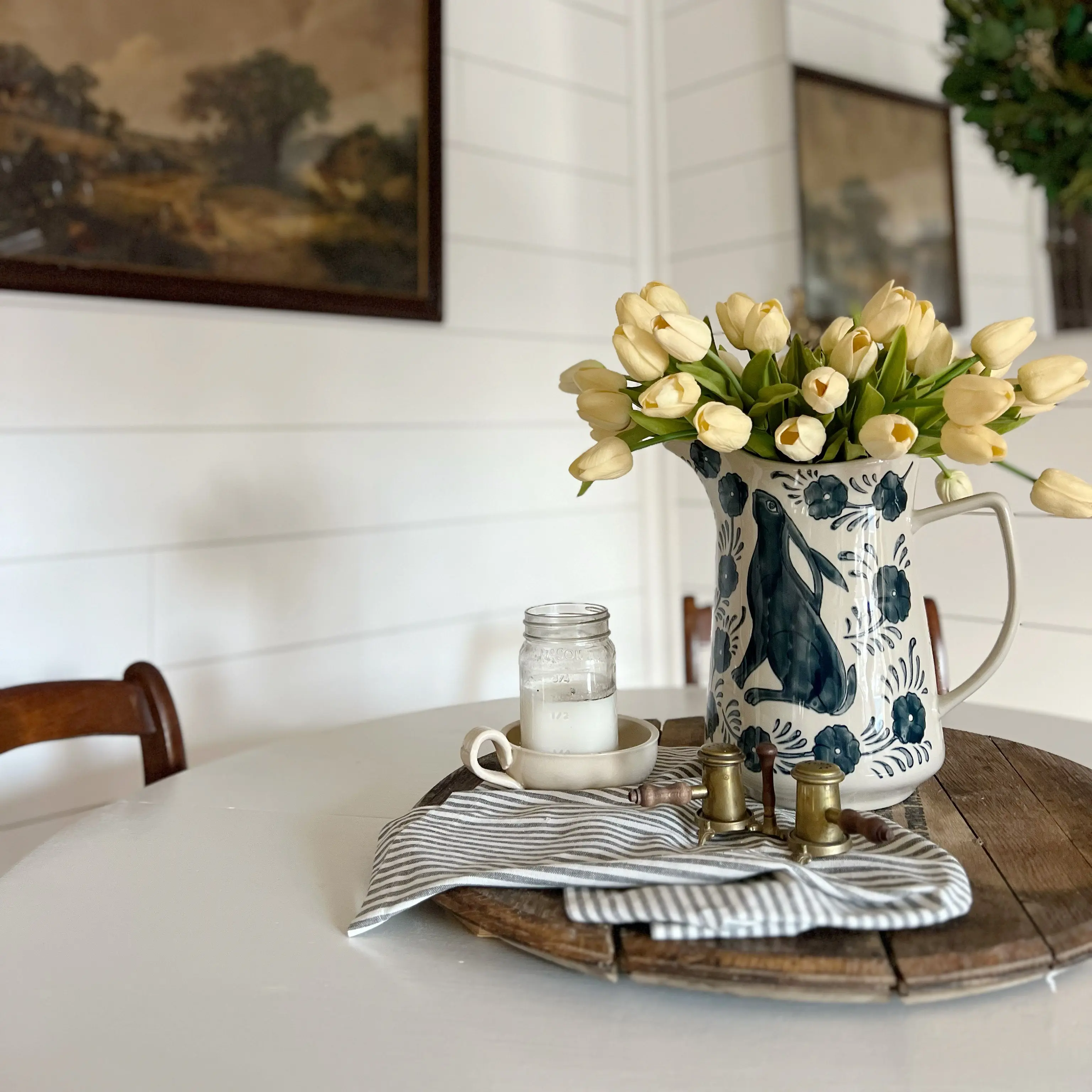 @Antique Farm House is home decor perfection! This bunny pitcher +  faux tulips = perfection #homedecor #homedesign #cottagecore #cozyhome #cozycottage #cottagecoreaesthetic #summerdecor