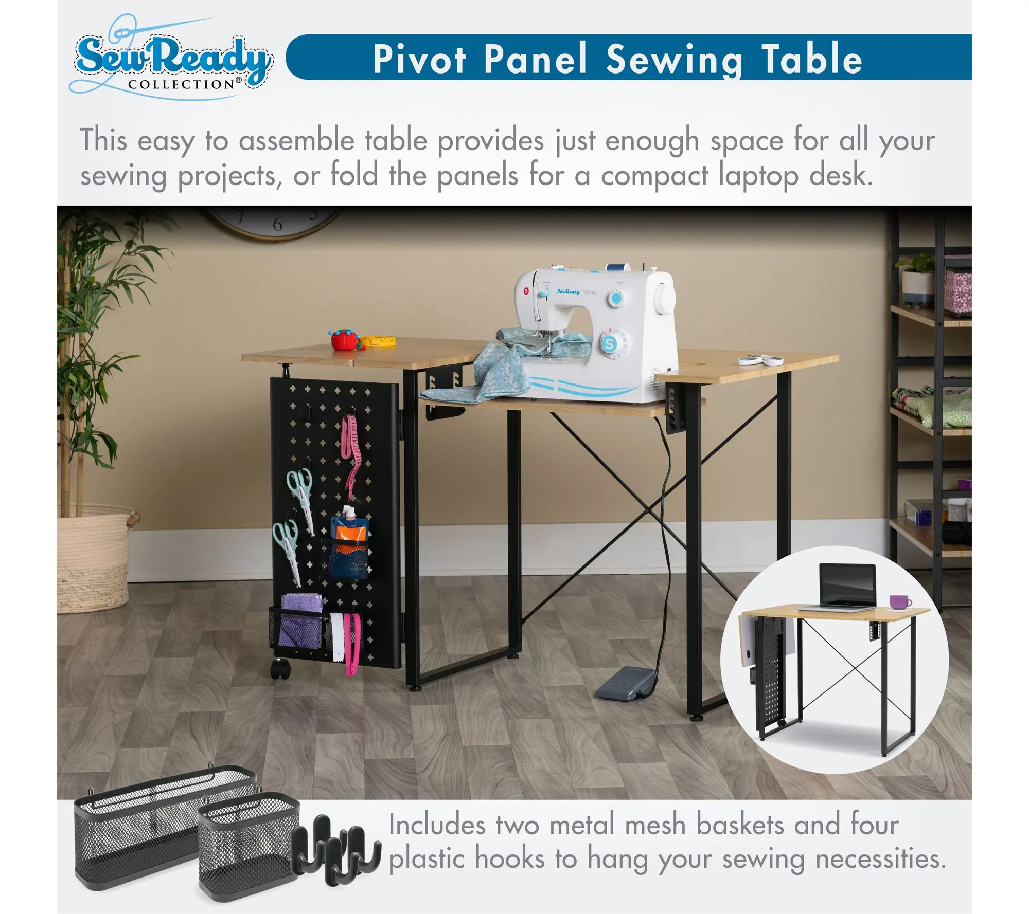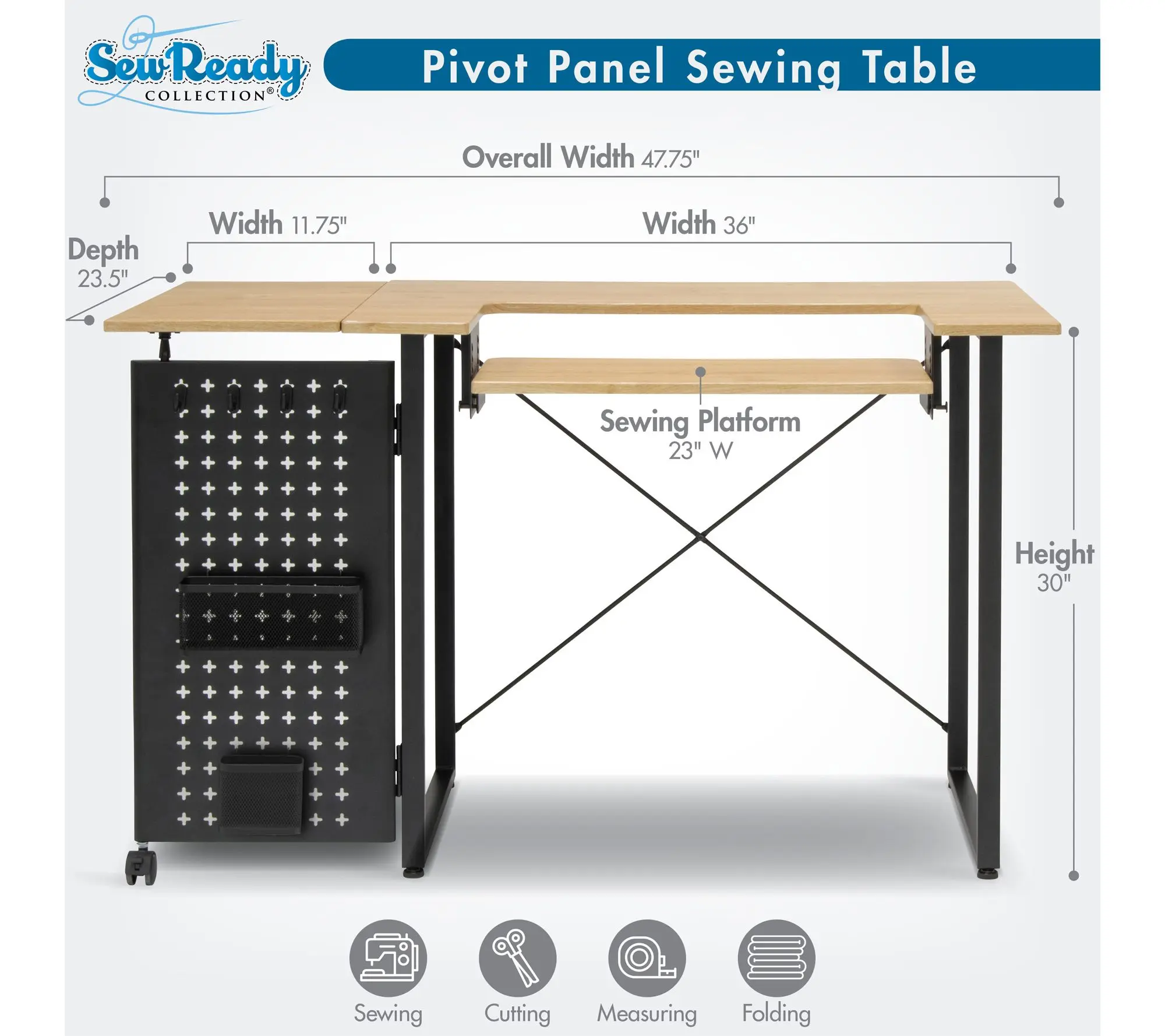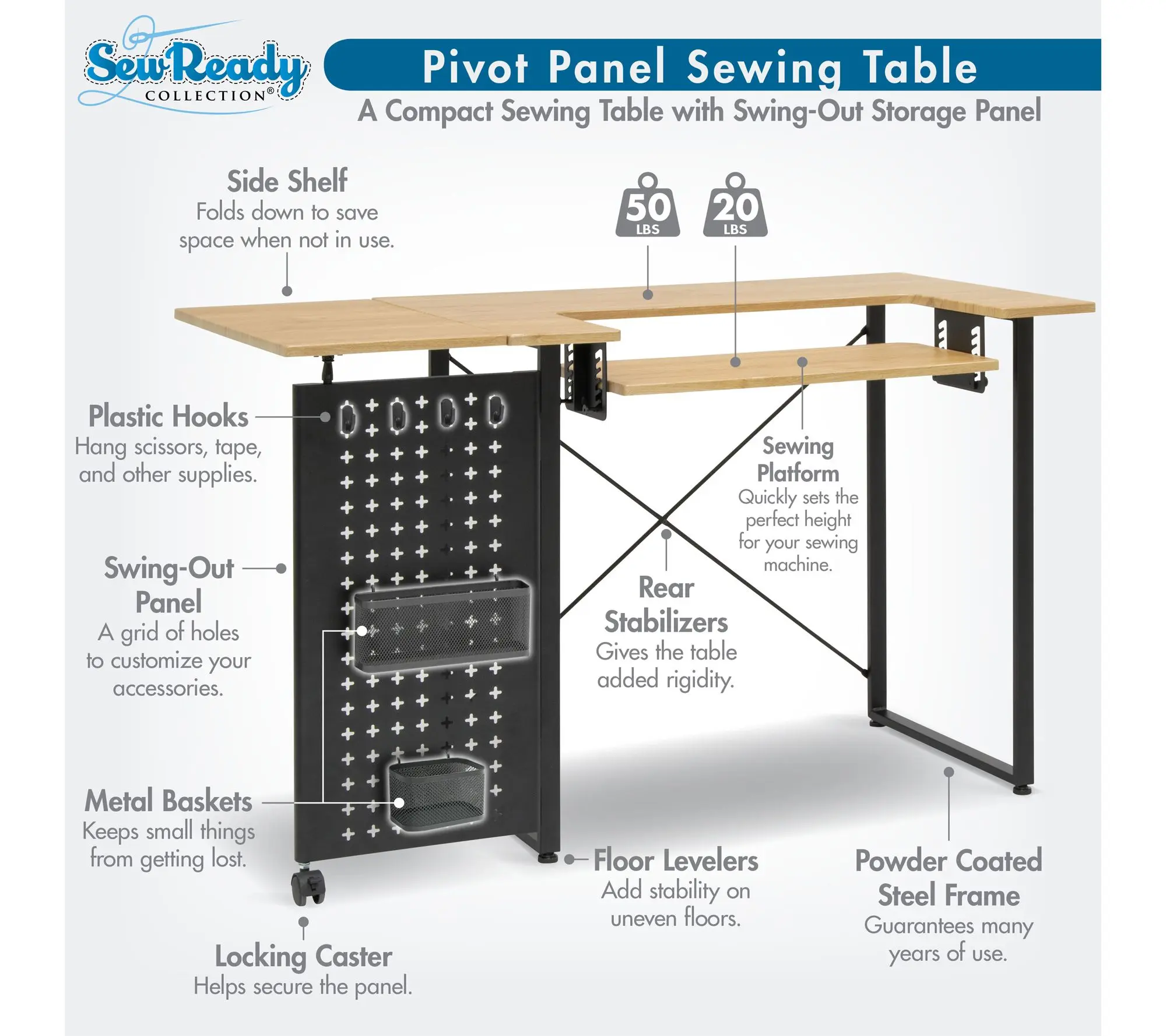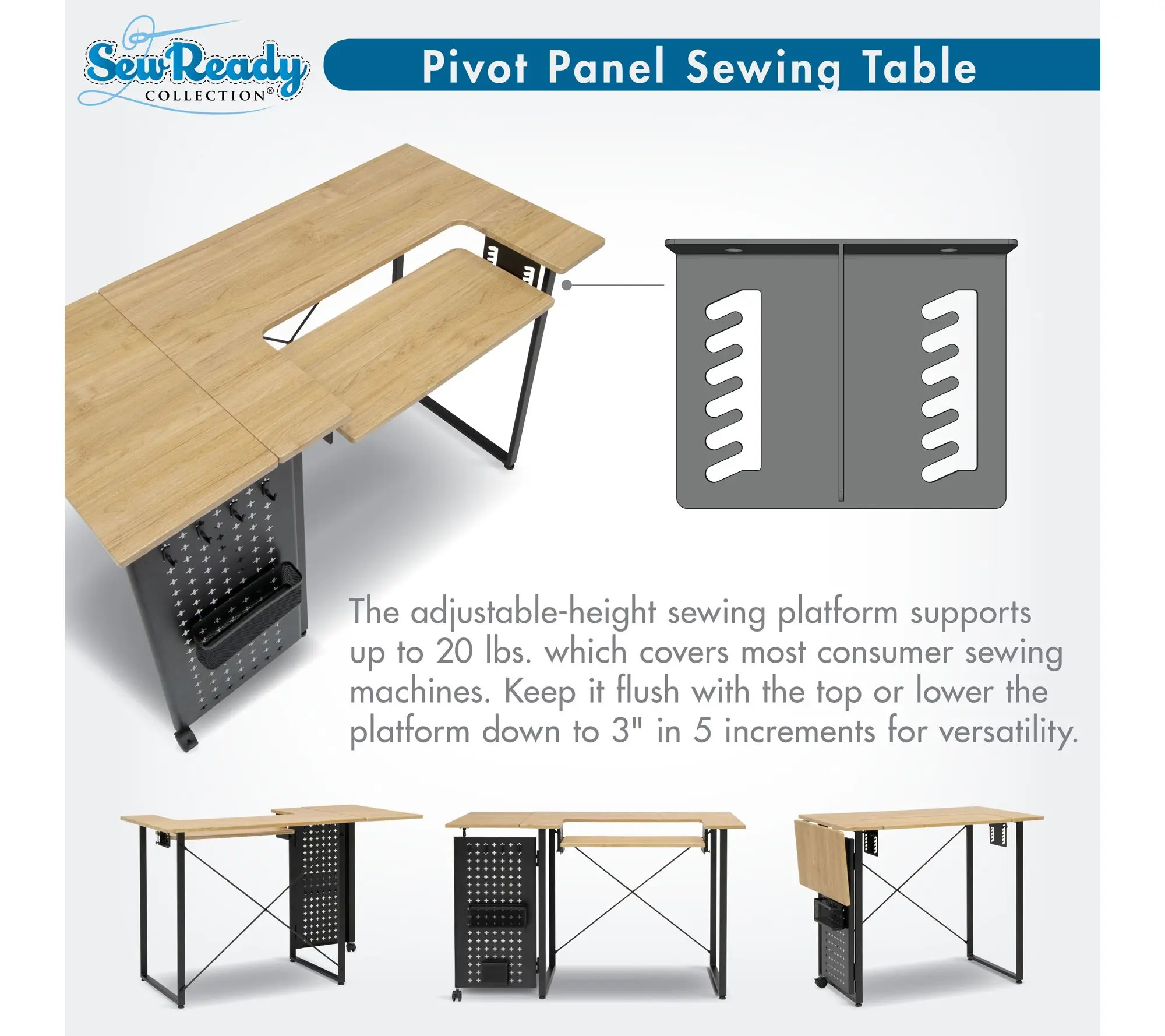 Sew Ready Pivot Sewing Table with Swingout Storage Panel