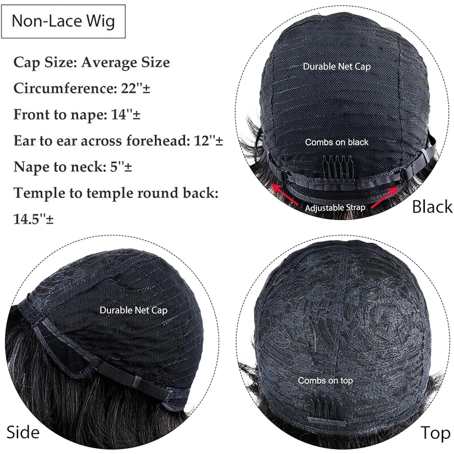 Cap Size:Average Size(22.5"),the size is adjustable and no pins or tape should be required, well fits for the most. You can adjust the hooks inside the cap to the correct size for you.