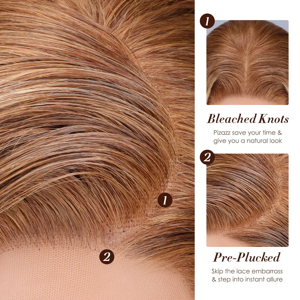 5. Pizazz Hair 13x6 Pre Bleached Honey Blonde Straight Full Lace Front Wigs Human Hair Pre Plucked For Momen 220% Density Highlight HD Transparent Lace Frontal Wigs with Baby Hair