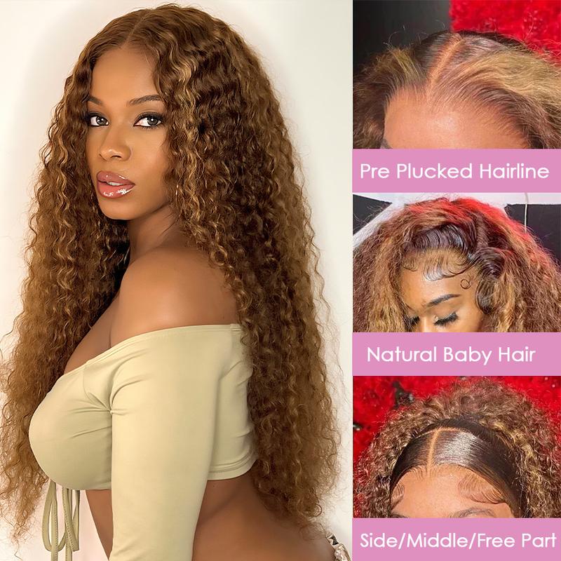 Pizazz Hair 4/27 Highlight Honey Blonde Deep Wave 13×6 Human Hair HD Lace Front Wigs 180% Density Lace Frontal Human Hair Wigs