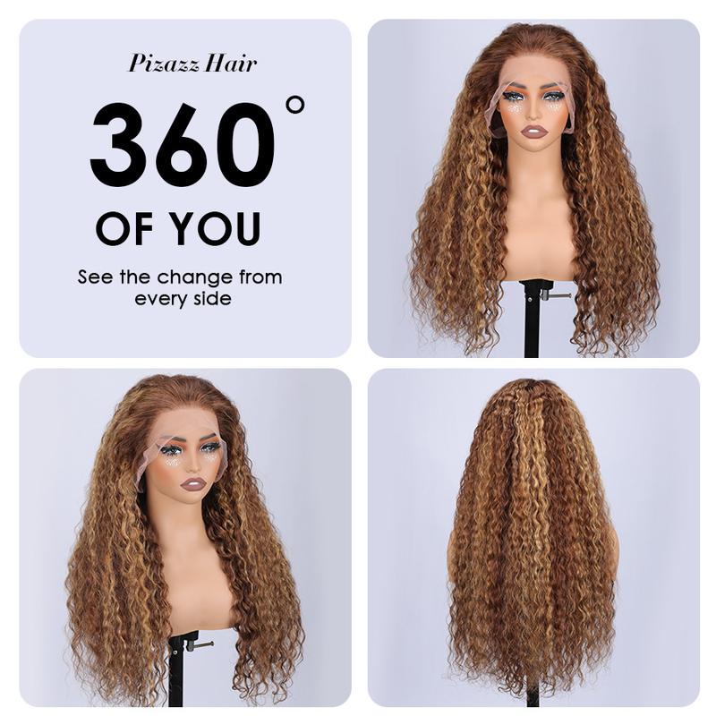 5. Pizazz Hair 4/27 Highlight Honey Blonde Deep Wave 13×6 Human Hair HD Lace Front Wigs 180% Density Lace Frontal Human Hair Wigs