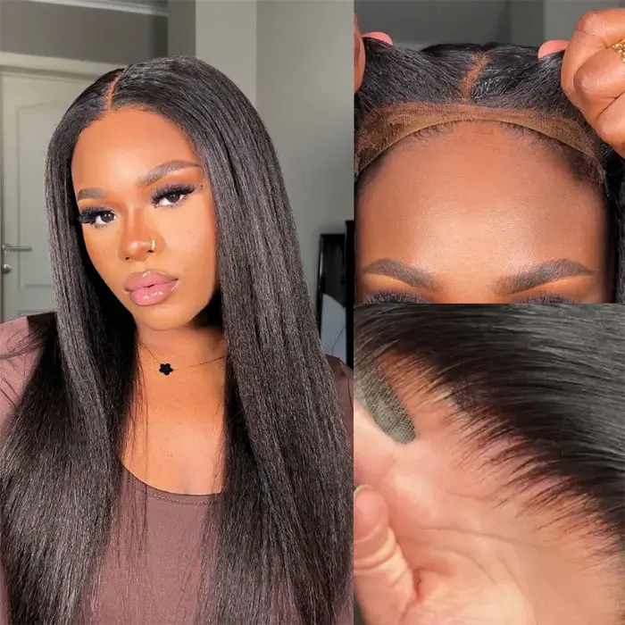 Pizazz Hair Hidden Strap Kinky Straight 360 Full Lace Pre Plucked & Bleached HD Lace Pre Cut Glueless Wigs