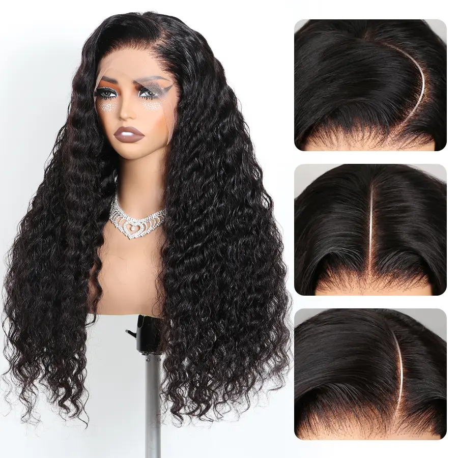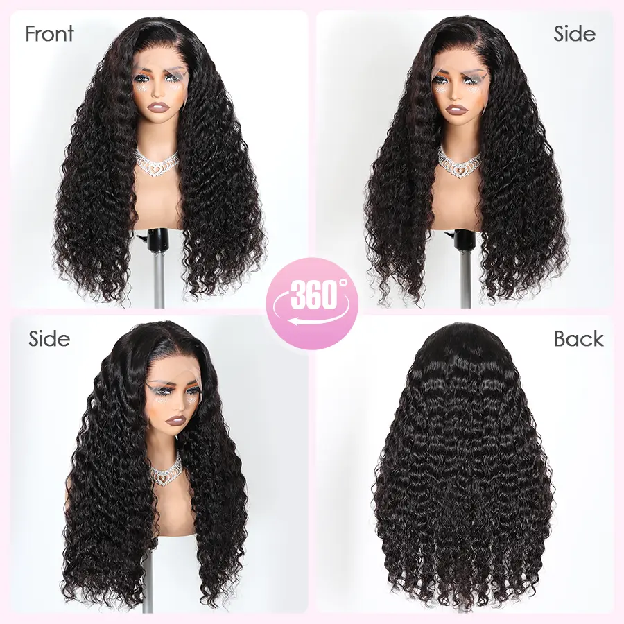5. Pizazz Hair Pre_bleached Small Knots Water Wave 13x6 HD Transparent Lace Front Wigs Human Hair Pre Plucked 220 Density Wet and Wavy Curly Human Hair Wigs for Women with Hairline