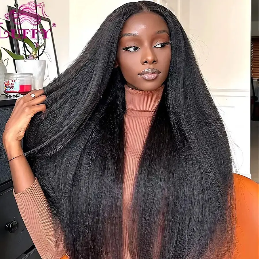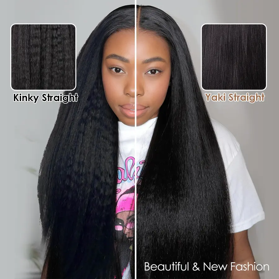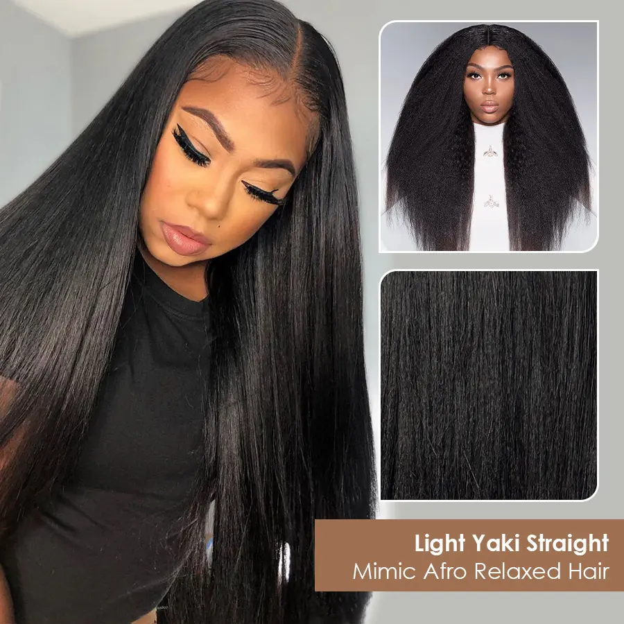 Pizazz Hair Yaki Straight Hair 8x5 Gluess Wigs Pre Cut HD Lace WIgs Preplucked Natural Hairline 220% Density Easy to Install