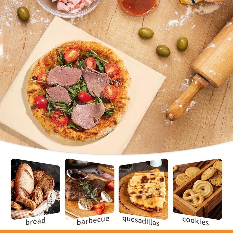 ·Multipurpose:This pizza stone set is a real all-rounder! Not only can you use it to bake fresh or frozen pizzas, but it's also perfect for all kinds of other culinary adventures. From delicious flatbreads and sourdough to scones and reheating leftover pizza without soggy dough or burnt spots, this stone is your new best friend in the kitchen. And the best part is, you can enjoy it with your loved ones at home!